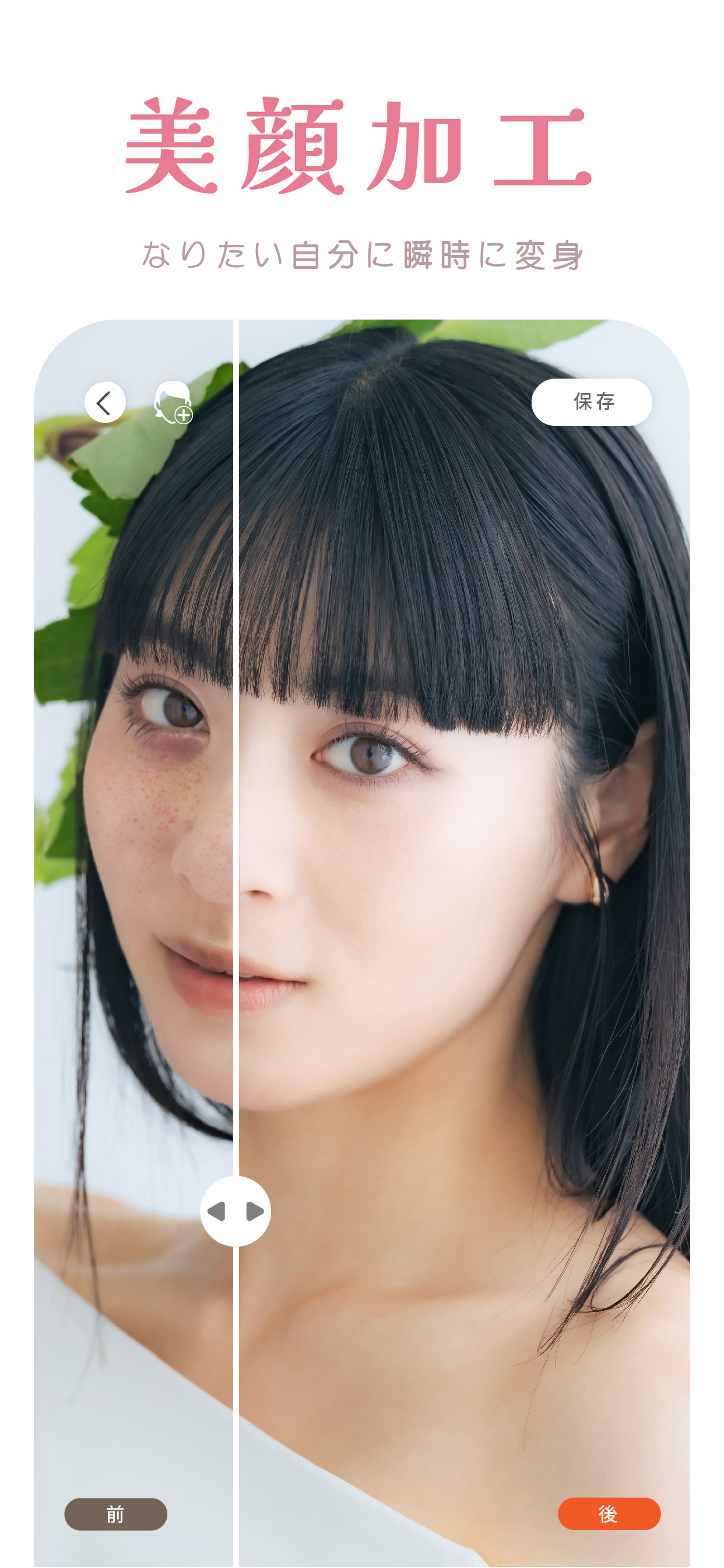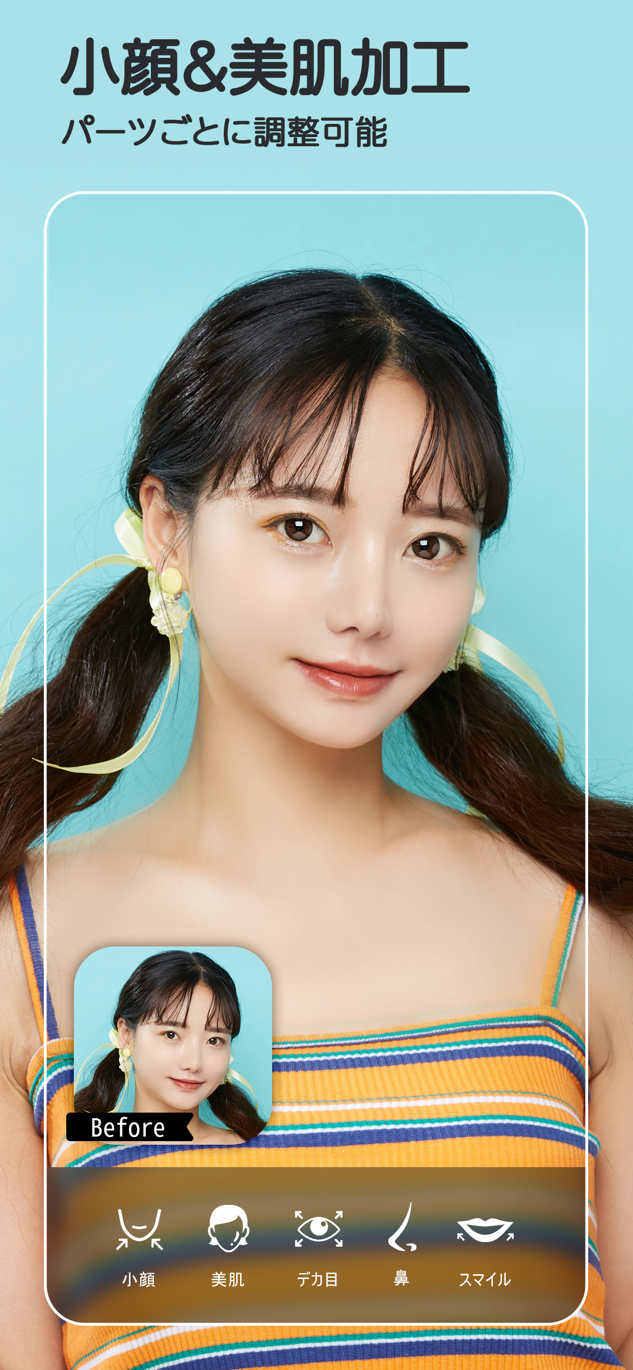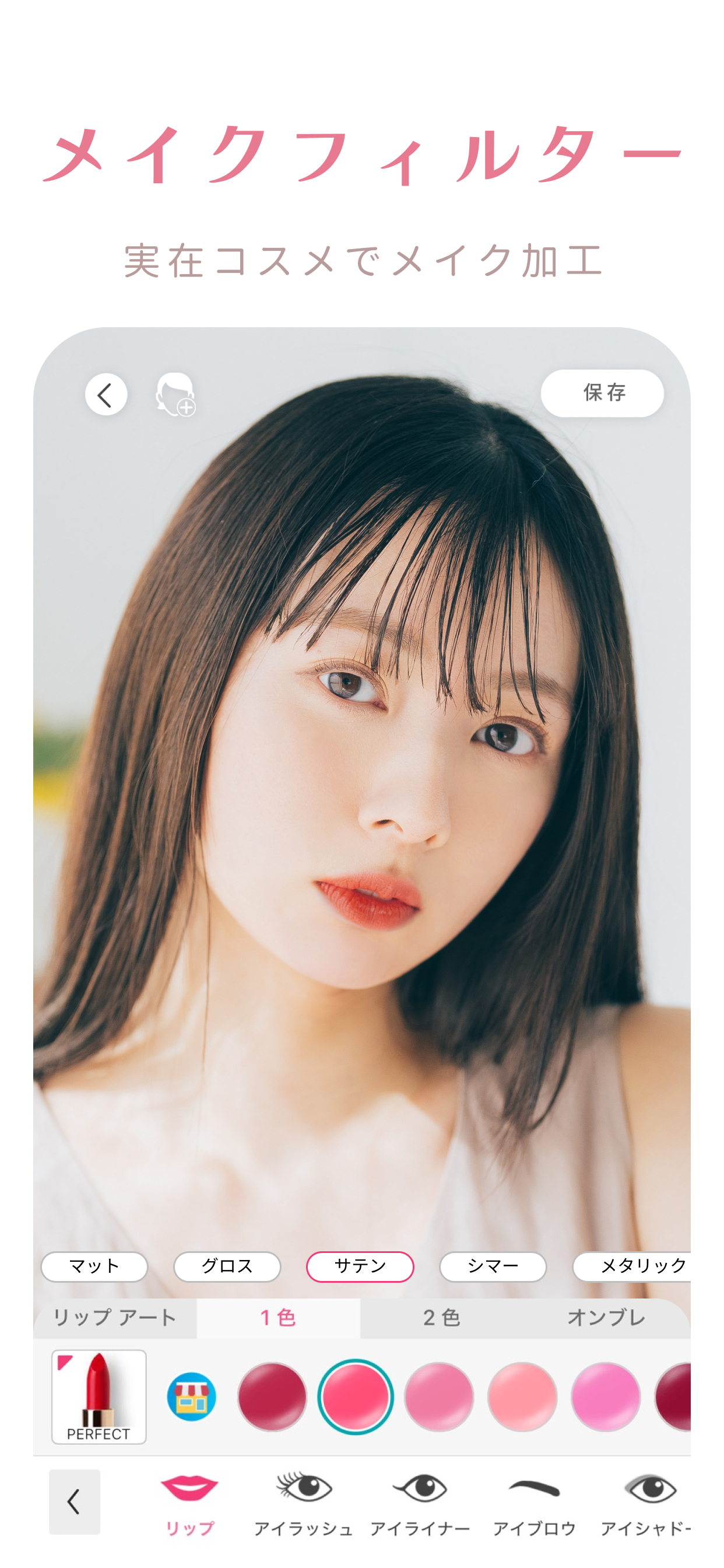- パーツごと、または顔全体をワンタッチで。メイクをいろいろ試せる。