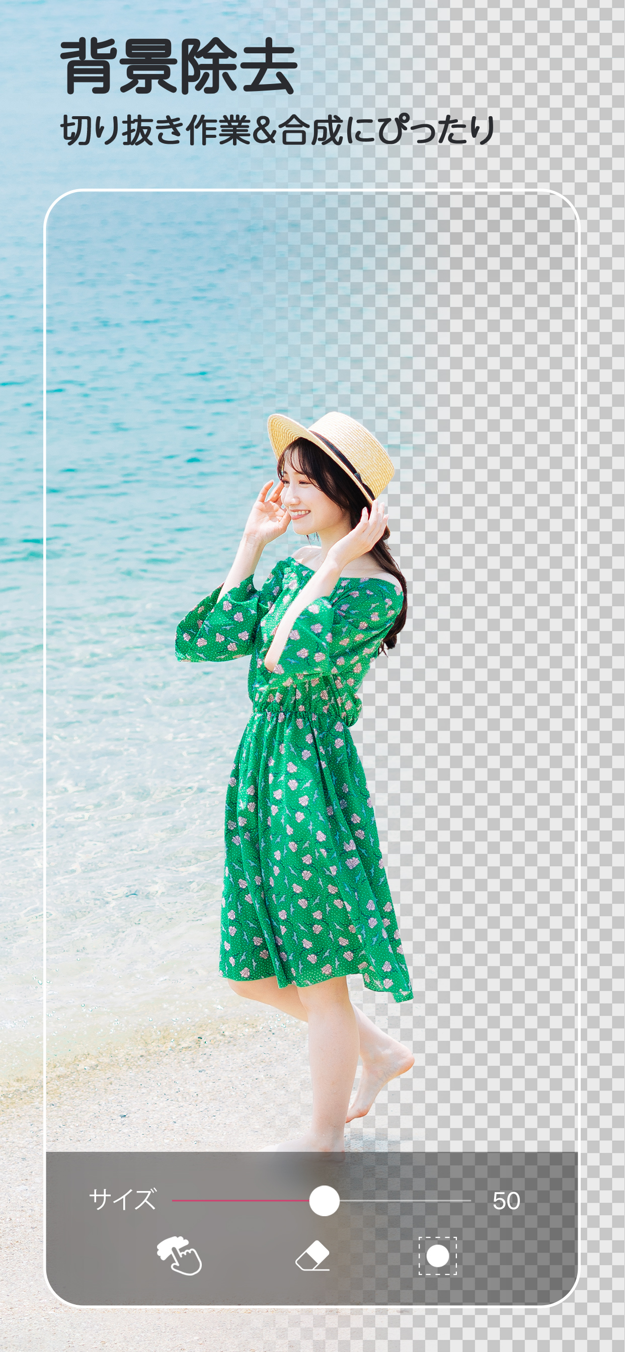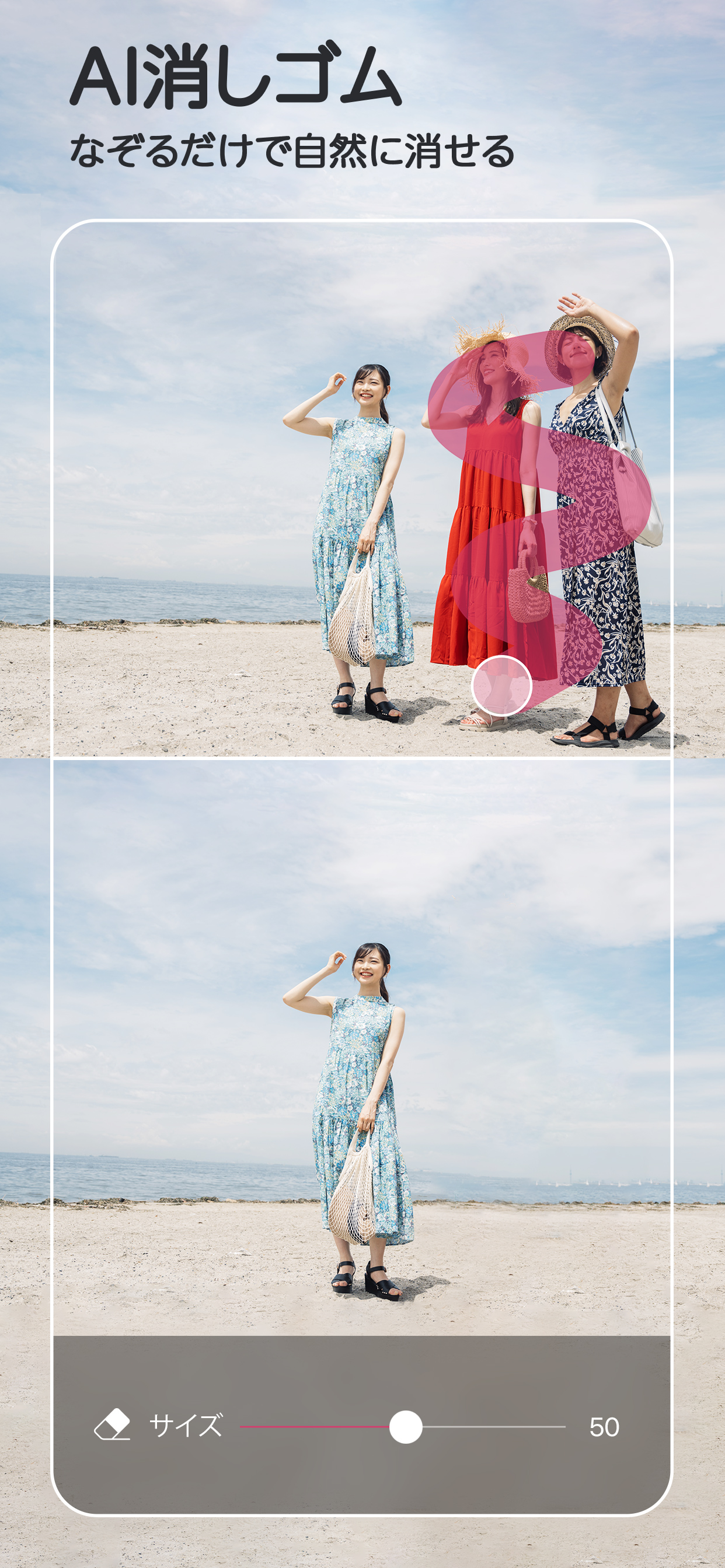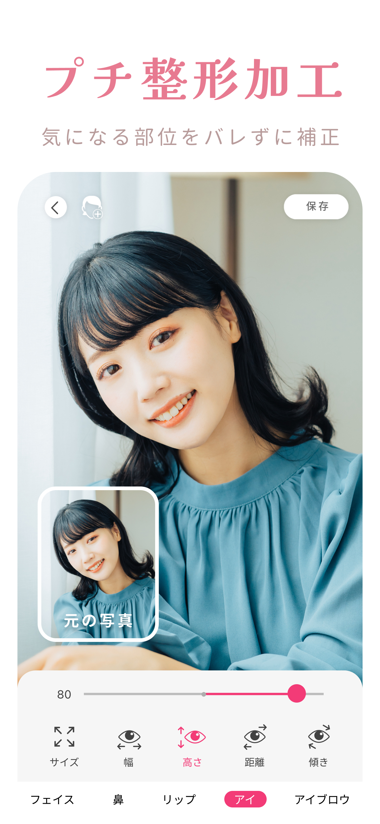 - パーツごと、または顔全体をワンタッチで。メイクをいろいろ試せる。