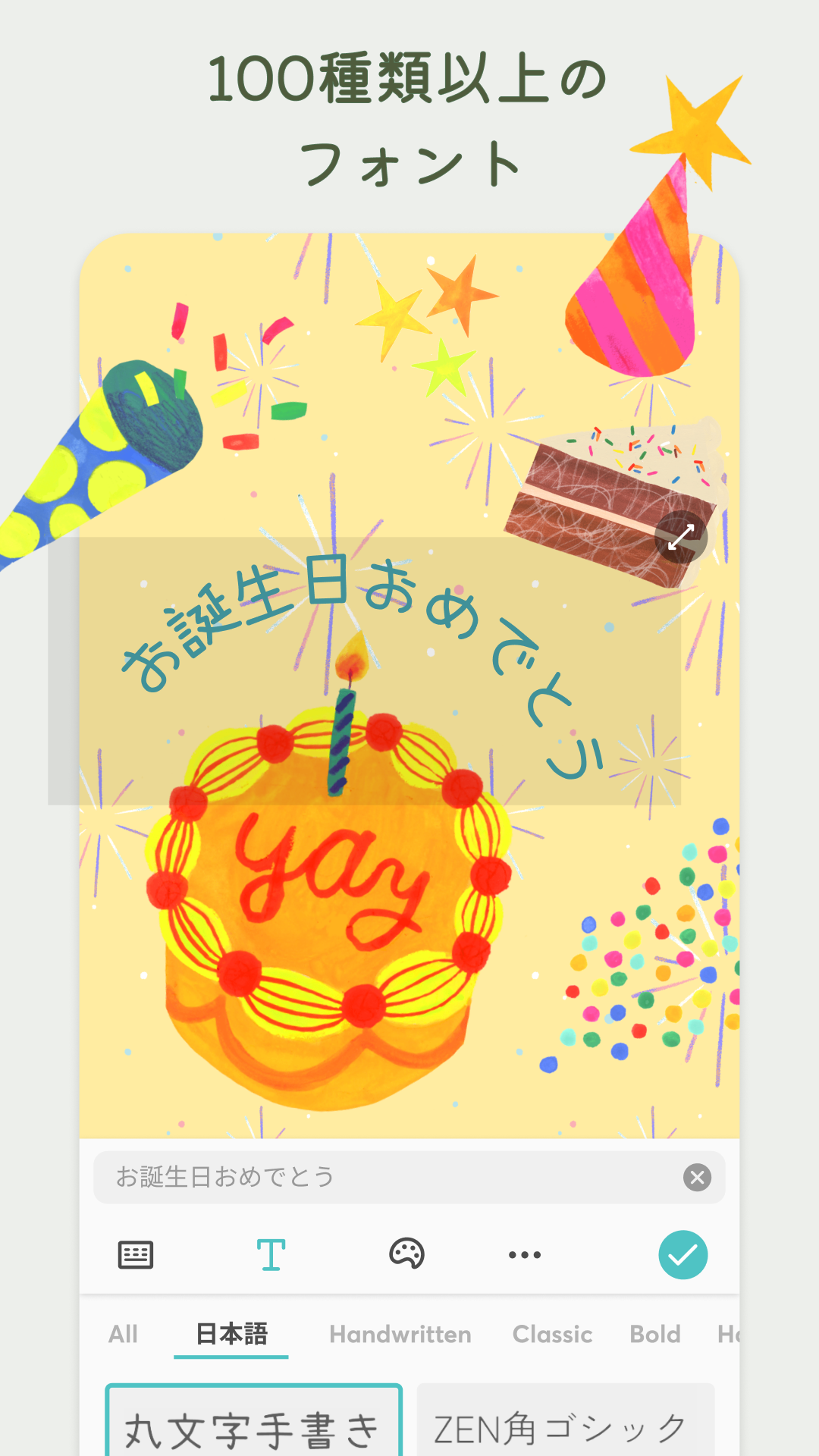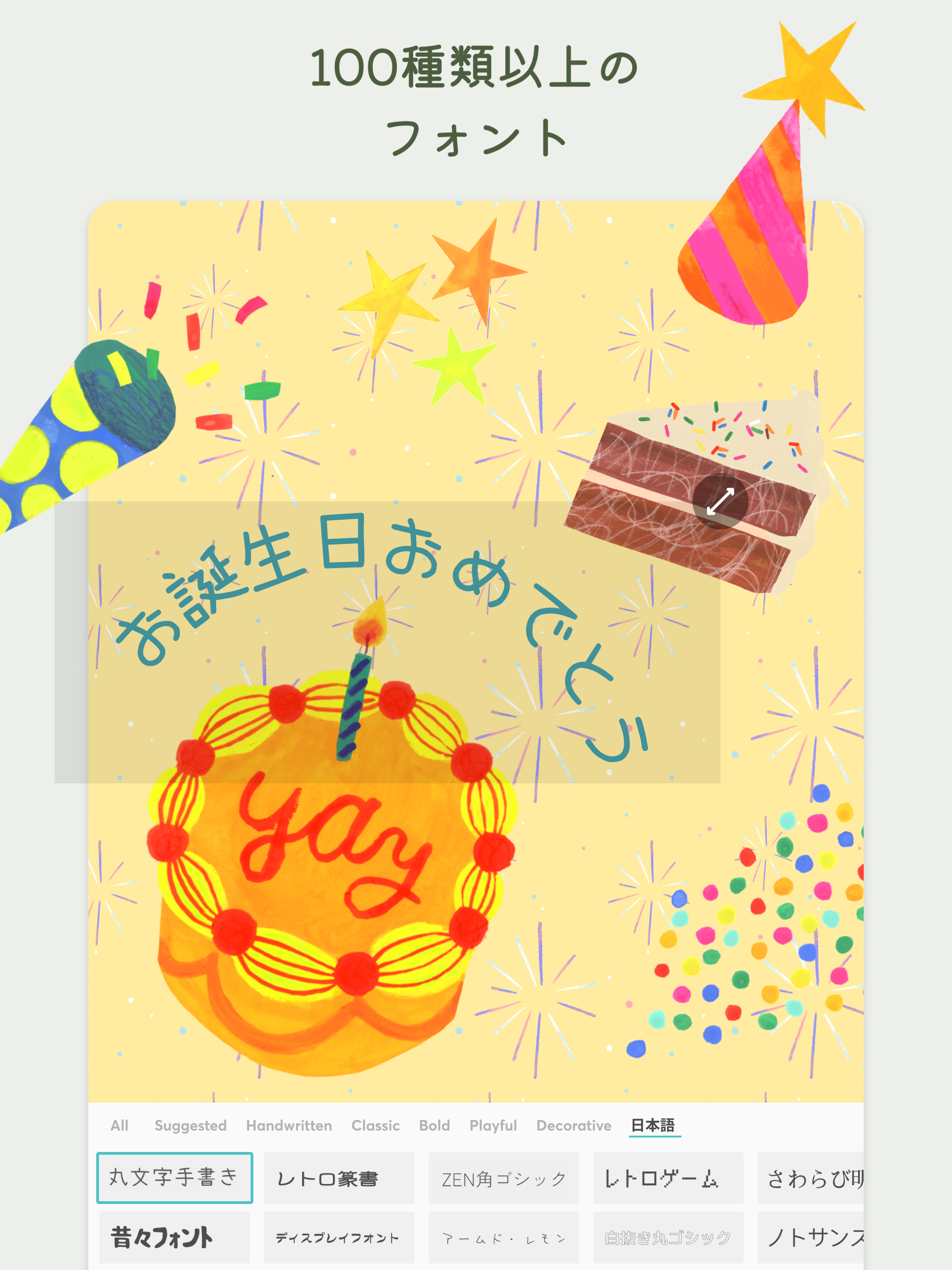 - 無料で使えるスタンプだけで実際にアレンジ。手書き風のものが多く、ポップな感じで元気いっぱいな仕上がりに。