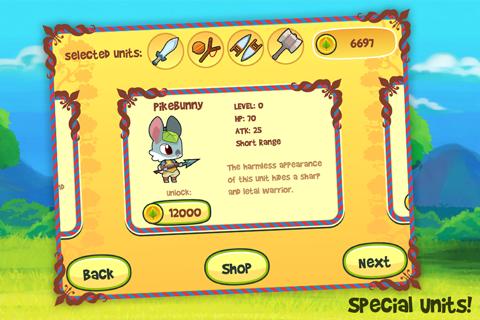 • Strong and skilled soldiers: Sword Cat, Hammer Dog, Axe Wolf, Katar Fox, Pike Bunny, Bomb Parrot, Sling Squirrel, Shooter Ferret and Knuckle Bear