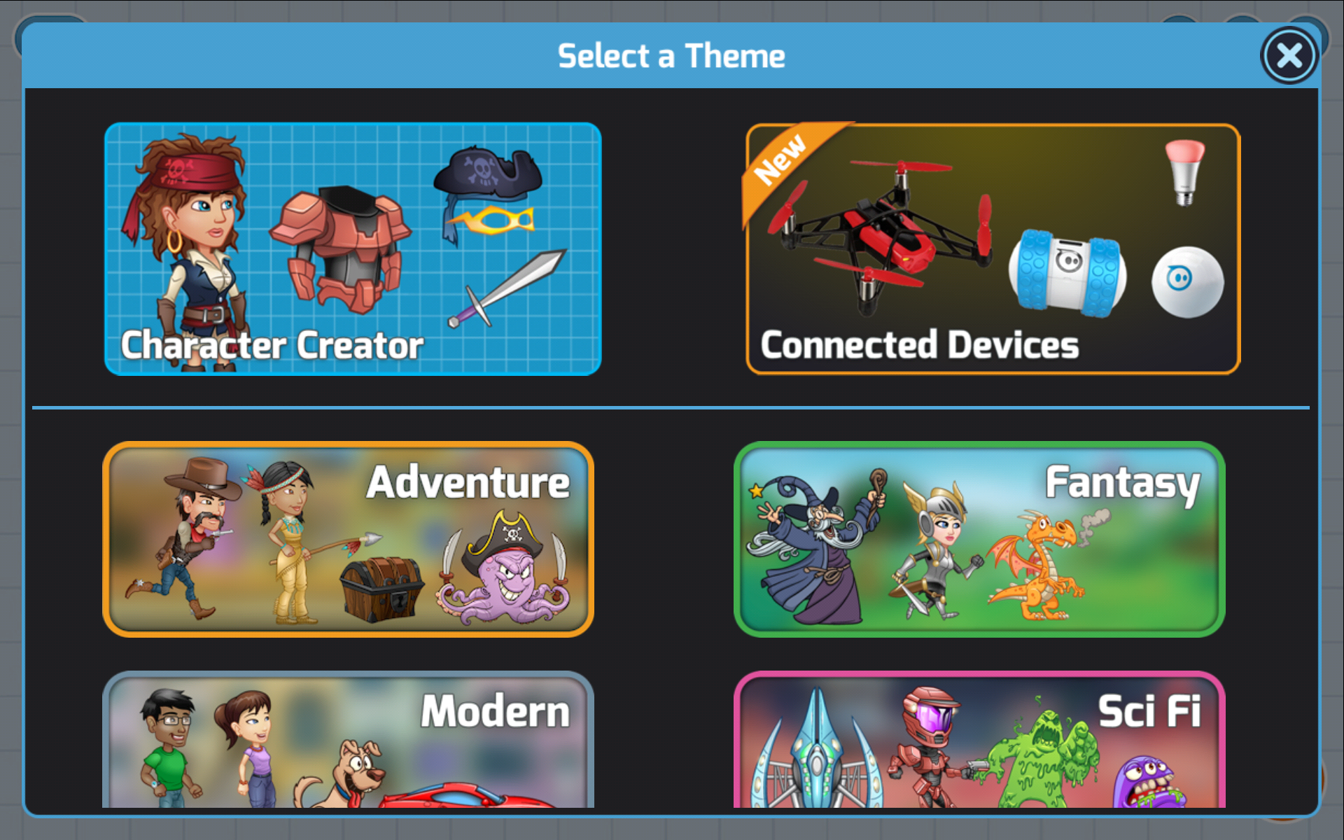 Now includes code blocks to control connected devices such as flying drones, robots, and lighting systems. Learn to use these new blocks in "Crash Course" with virtual representations of drones, robots, and lights. Then find these blocks in the “Create” mode and build programs to control real devices. Supports programming Sphero, Ollie, Parrot Rolling Spider drone, Philips Hue, and Lux personal lighting systems.
