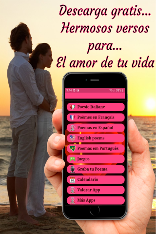 Por lo general a las mujeres les gusta ser románticas y que les dedique frases de amor y versos de amor, del mismo modo que nos les hacer una sorpresa de amor y poemas de amor con imágenes de amor para mi novio, novia entonces si eres chica con esta aplicación es tu oportunidad para dedicarlo las más admirables imágenes con frases de amor para tu ser amado, y si eres chico podrás darle un detalle de amor con los poemas de sentimiento románticos con imágenes. Tal vez a ti no te gusta los poemas no te preocupes también hay música de amor para dedicar a ese amor que amas con frases para el amor de mi vida. ¿Todavía no lo has dado una sorpresa de amor? Es el momento para sorprenderle con imágenes de amor y frases bonitas y sacarle una extravagante sonrisa cada día.