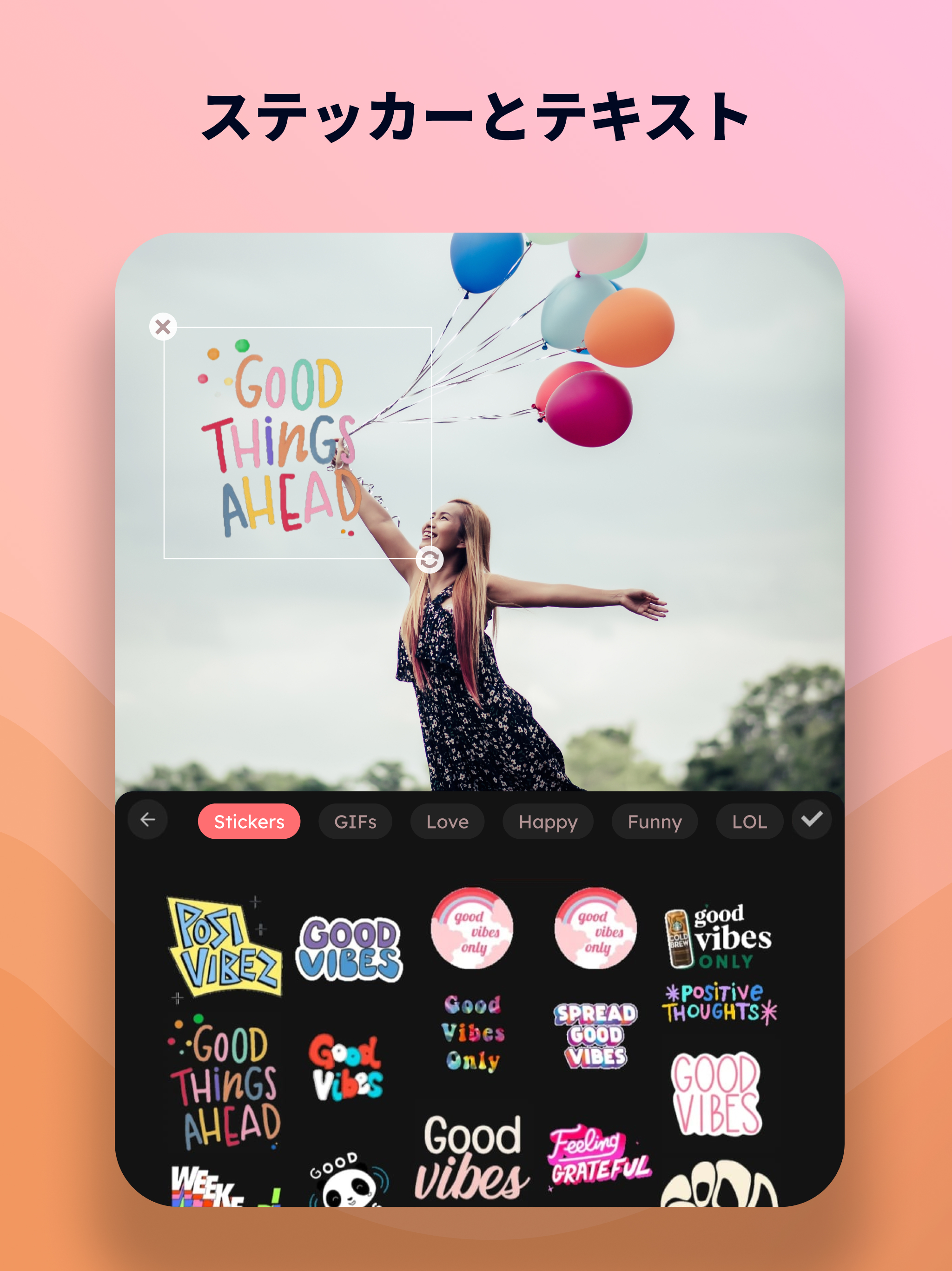 歌詞動画の作成が驚くほど簡単に行えます。動画に文字入れを行い、アニメーションテキストで歌詞やメッセージを視覚的に表現。字幕編集アプリとしても使えるので、動画に音楽をつける操作をしながら歌詞を同期させる本格的なミュージックビデオ制作も可能です。テキストのフォント、サイズ、カラーも自由にカスタマイズでき、あなただけのスタイルで映像を彩れます。