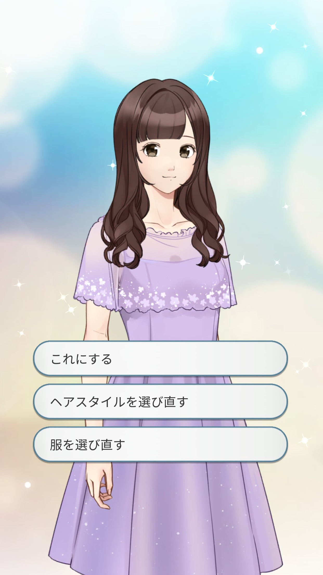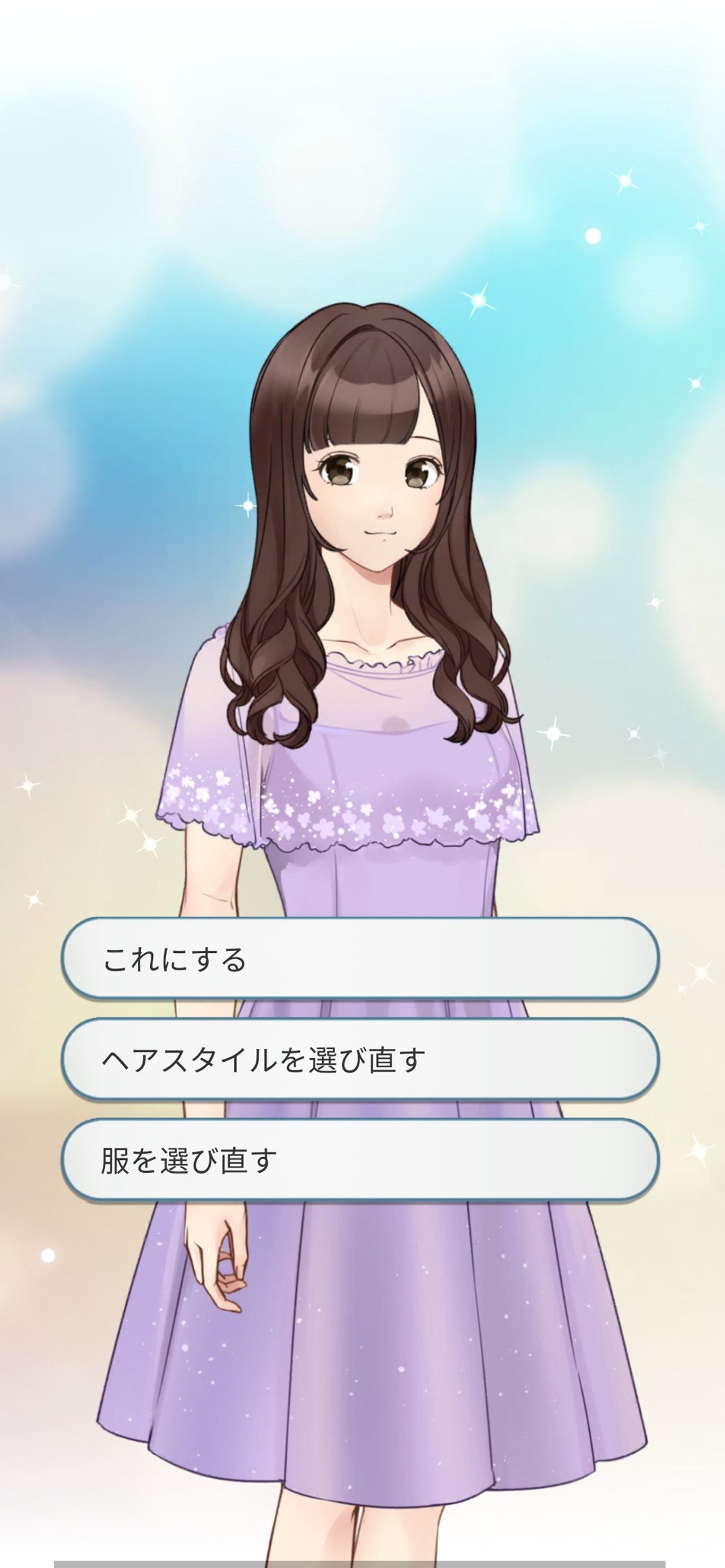 状況に合わせて、登場人物の服装やヘアスタイルが選択できます!あなたの選択によって変わる相手の反応を楽しむことができる恋愛シミュレーションゲームです!