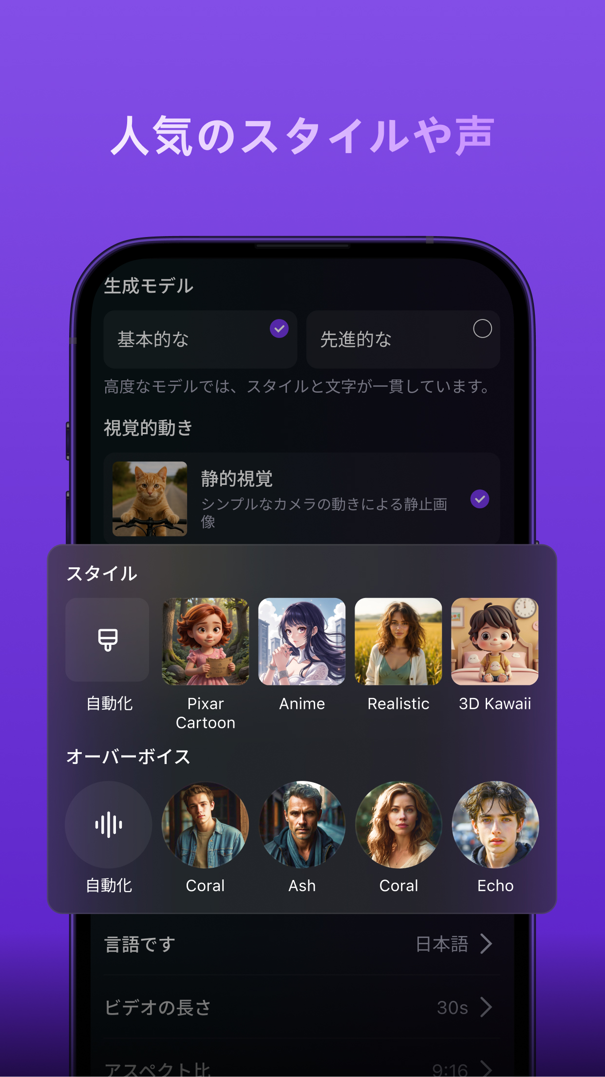 ·AI顔出し不要動画 - あらゆるアイデアを魅力的な公開可能な動画に簡単変換。AI音声、高品質AI画像、動的キャプション、独自のAI生成音楽をワンクリックで実現。
