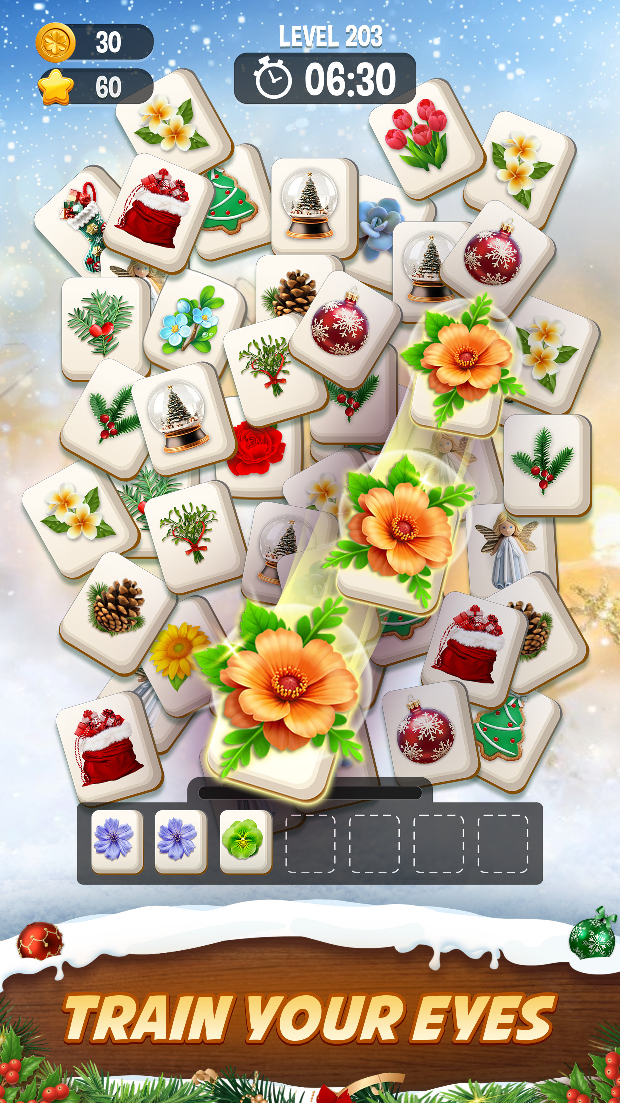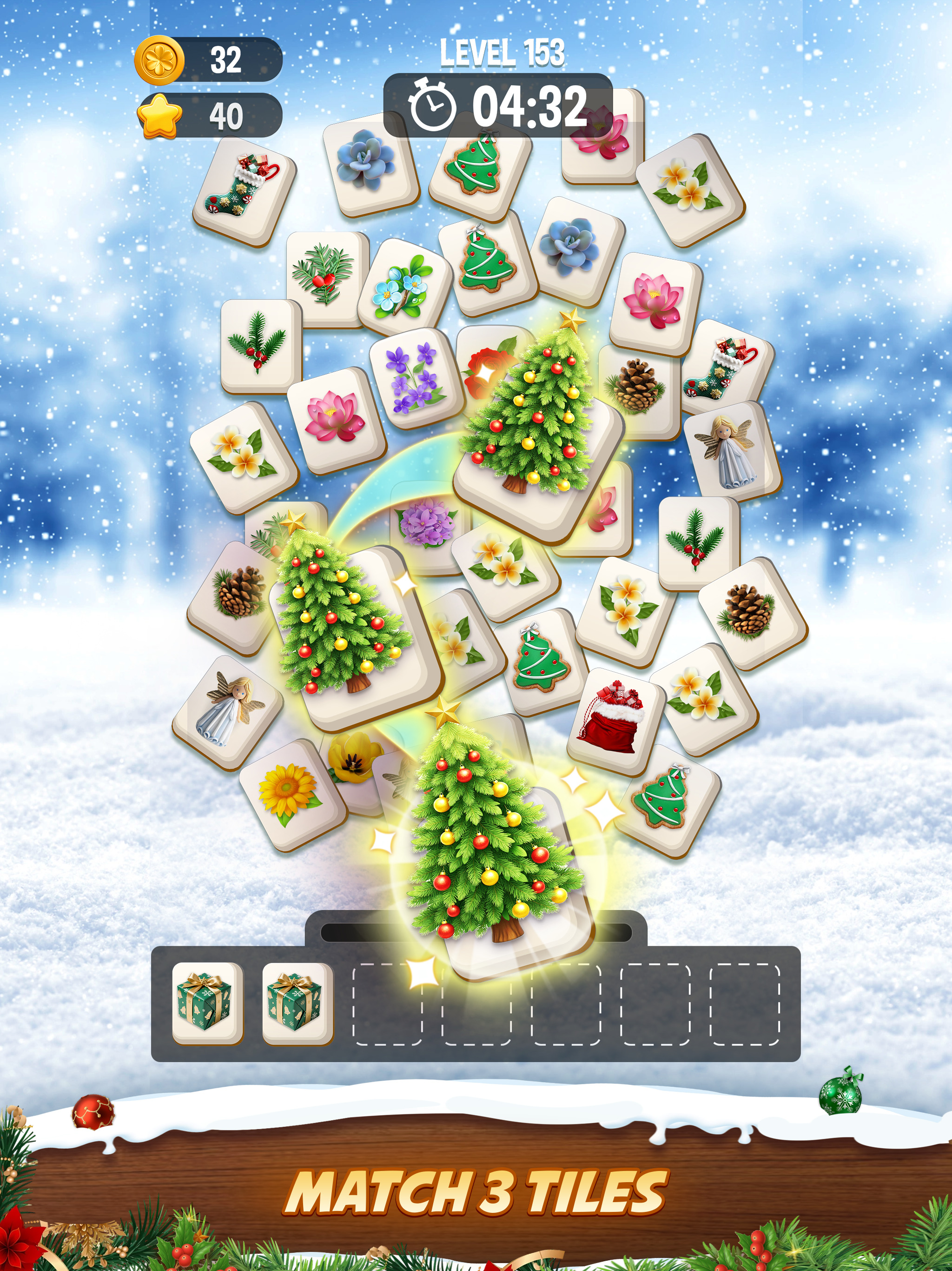 🌺 Find and tape 3 same tiles to clear them and score