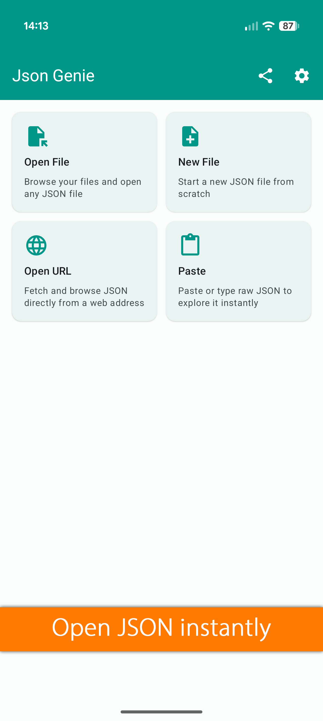 Open JSON from files, shared content, pasted text, URLs, and supported archives. Create a new document from scratch, browse data in a clear tree view, and make changes without fighting the interface. Json Genie is built for both technical and non-technical users, so it feels approachable for quick checks and powerful enough for deeper editing.