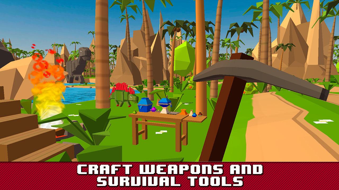 To save your game progress tap «save» button in the pause menu Explore unusual environments made of pixel and blocks and face difficulties – your enemies are real Jurassic dinos, not simple wild animals or cruel predators! Welcome to the lost survival island – desert uninhabited place you’ve appeared on. Fight for your life, hunt and battle against animals, quarry resources to craft weapons and tools or build shelters. Dive into the atmosphere of wilderness exploring Jurassic forests full of fierce dinosaurs with Jurassic Island Survival Sim in 3D! Try yourself as a survivor, lost and lonely and stay alive at all costs! Explore lost prehistorical world – learn how to hunt, fish, craft clothes not to catch a cold and make weapons from improvised materials in amazing cube world where everything is made of pixels and blocks. Level up your survival skills battling against dangerous cube dinos – T-Rex, Pterodactyl, Stegosaurus and even more wild and fierce dinosaur flooded this tropical survival island. Thrive in this hostile prehistorical environments with Jurassic Island Survival Simulator 3D game! Dangers are everywhere! Avoid meeting with blocky Tyrannosaurus or pixel Velociraptor (they are as cruel as real dinosaurs, I bet!) and don’t forget that your main goal is to survive! Explore cube survival island, hide in bushes and caves, find weapons and blocky survival tools, which could help you to stay alive! Salvage all the tools and weapons or craft your own ones! Get your hunting, battling skills and exploration to a new level battling against carnivores dinos with Jurassic Island Survival Sim game! There is a T-Rex behind this tree, so keep your pixel weapon alert! Explore crafty island, hunt for animals to find food, battle against Tyrannosaurs, Velociraptor or other dinos for your life, build shelters to have a rest and discover the secrets of this mysterious place. What happened here? Is it a kind of time paradox? Get to know playing Jurassic Island Survival Simulator! Use all your exploration, battling and survival skills just to stay alive! Mind character indicators - health, energy and fullness. Never let it drops – there is no chance to survive! Find or craft special survival tools – weapons, axes, fishing rods or just sticks to make fire. Your ingenuity may help you to stay alive in such harsh conditions with this desert island simulator! Explore lost world full of danger and try to make such an unfriendly place your home! Jurassic Island Survival Simulator features: - Explore Lost Jurassic island – fight against dinos and other wild animals, find food to survive and try to make the place your home - Cure pixel environments – it’s all made of cubes and blocks here! Trees, houses, dinosaurs and even your own survivor! - Hunt for wild animals, battle against Tyrannosaurs, Velociraptor or other dinos, gather or fish to stay alive - Unique crafting system – craft, weapons, tools and even clothes from improvised materials - Ultimate lost island survival simulator in 3D Upgrade your survivor to battle against cube Jurassic dinos, find pixel weapon and make your life in this Lost World environment safe! Hunt, fish or gather to find food, fight against dinos such as T-Rex, Velociraptor or other wild animals and try make this dangerous place your home! Dive into the atmosphere of prehistorical wilderness with Jurassic Island Survival Simulator in 3D! Are you afraid of wild dinos? Upgrade your hunting, battling and exploring skill with this simulator and make this dangerous place your home! More pixel games, features and fun on Facebook - https://www.facebook.com/Pixel-Island-149395085435266/