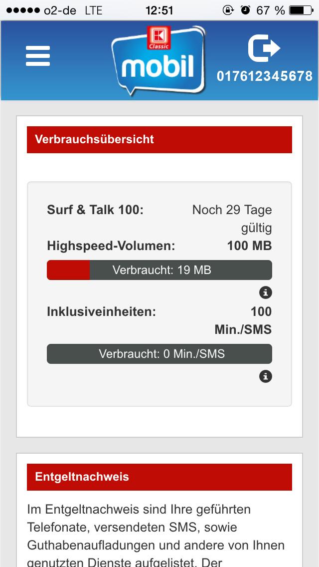 >> Verbrauchsübersicht: Behalten Sie Ihr verbleibendes Inklusiv-Volumen im Blick. Wie viele Freieinheiten für Minuten & SMS und wie viel Datenvolumen (in MB) sind noch verfügbar?
