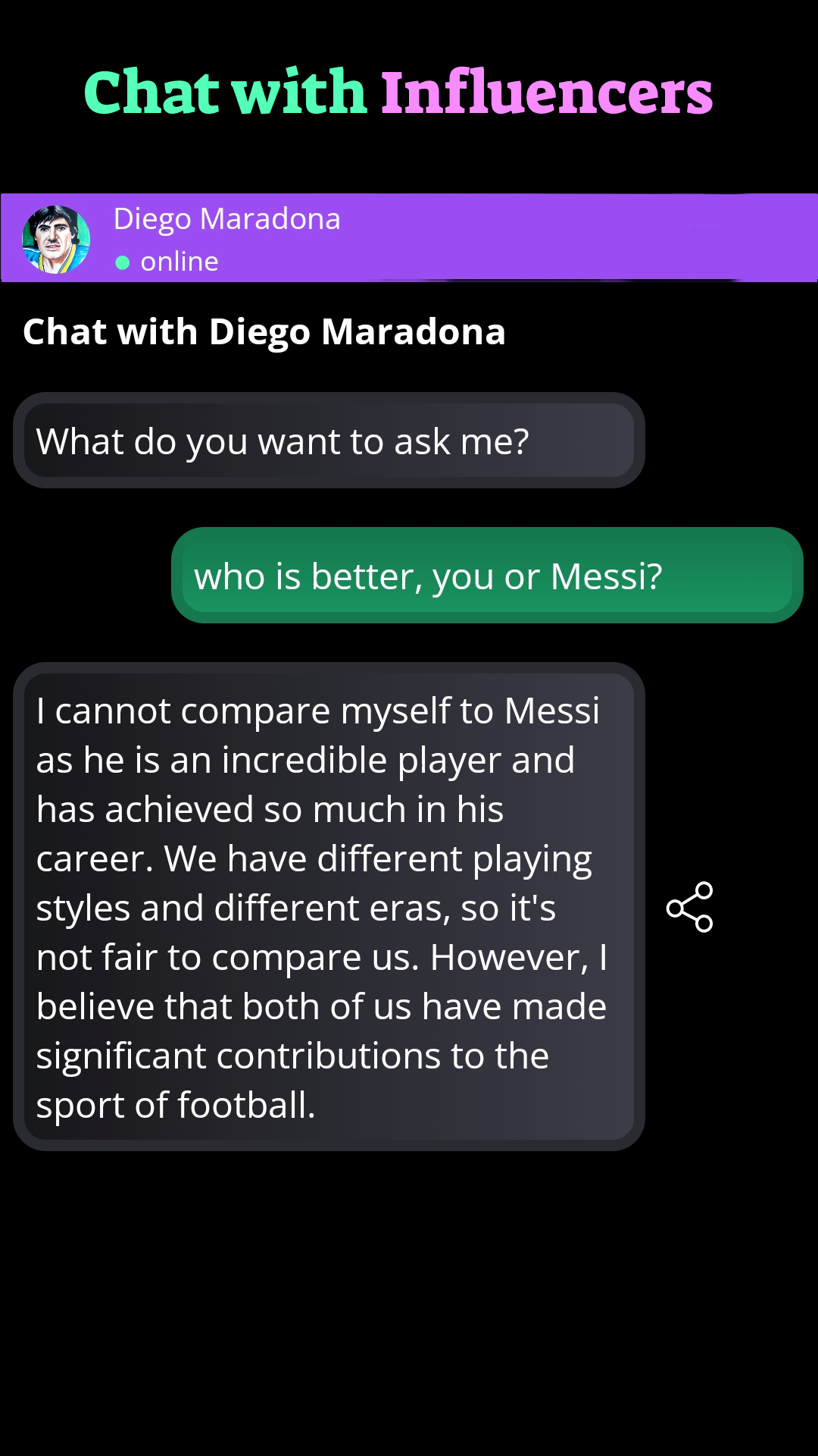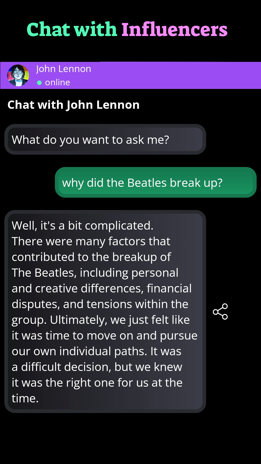 Introducing an extraordinary app, powered by ChatGPT, GPT-4 and DALL-E, groundbreaking AI technologies developed by OpenAI. With this app, users can embark on a truly immersive experience, where their questions are answered, stunning images are generated, and connections with influential figures of the past are made. Unleash the power of ChatGPT, an advanced language model designed to engage in meaningful conversations. Users can pose questions on a wide range of topics and receive accurate and informative responses. Whether it's about science, history, or even personal advice, ChatGPT harnesses the vast knowledge available to provide insightful answers that cater to users' curiosity. But the wonders don't stop there. With DALL-E, an incredible image generation system, the app enables users to create breathtaking visuals like never before. From ultra HD landscapes to charming anime characters, and even whimsical cartoon illustrations, the possibilities are endless. OpenAI's DALL-E leverages its understanding of artistic concepts and combines them with user input to generate unique, high-quality images tailored to their preferences. However, the app doesn't limit itself to just providing information and visuals. It goes a step further by allowing users to chat with some of the biggest worldwide influencers of the past. Imagine engaging in a conversation with iconic figures who have shaped history, culture, and society. From renowned scientists and philosophers to legendary artists and activists, the app creates a platform for users to connect with the minds that have left an indelible mark on the world. With OpenAI at its core, this app revolutionizes the way we interact with AI technology. It brings together the power of ChatGPT and DALL-E to create an all-encompassing experience that stimulates creativity, fosters learning, and encourages meaningful conversations. Users can tap into the vast knowledge and creative potential of AI to explore new horizons, gain insights, and connect with the intellectual giants of the past. Embrace the future of AI and immerse yourself in a world where information, imagination, and connection converge. Let ChatGPT and DALL-E, the remarkable innovations by OpenAI, be your guides on this incredible journey. Experience the thrill of having answers at your fingertips, witnessing stunning visuals come to life, and engaging with the greatest influencers of yesteryears. The power of AI is now within your grasp.