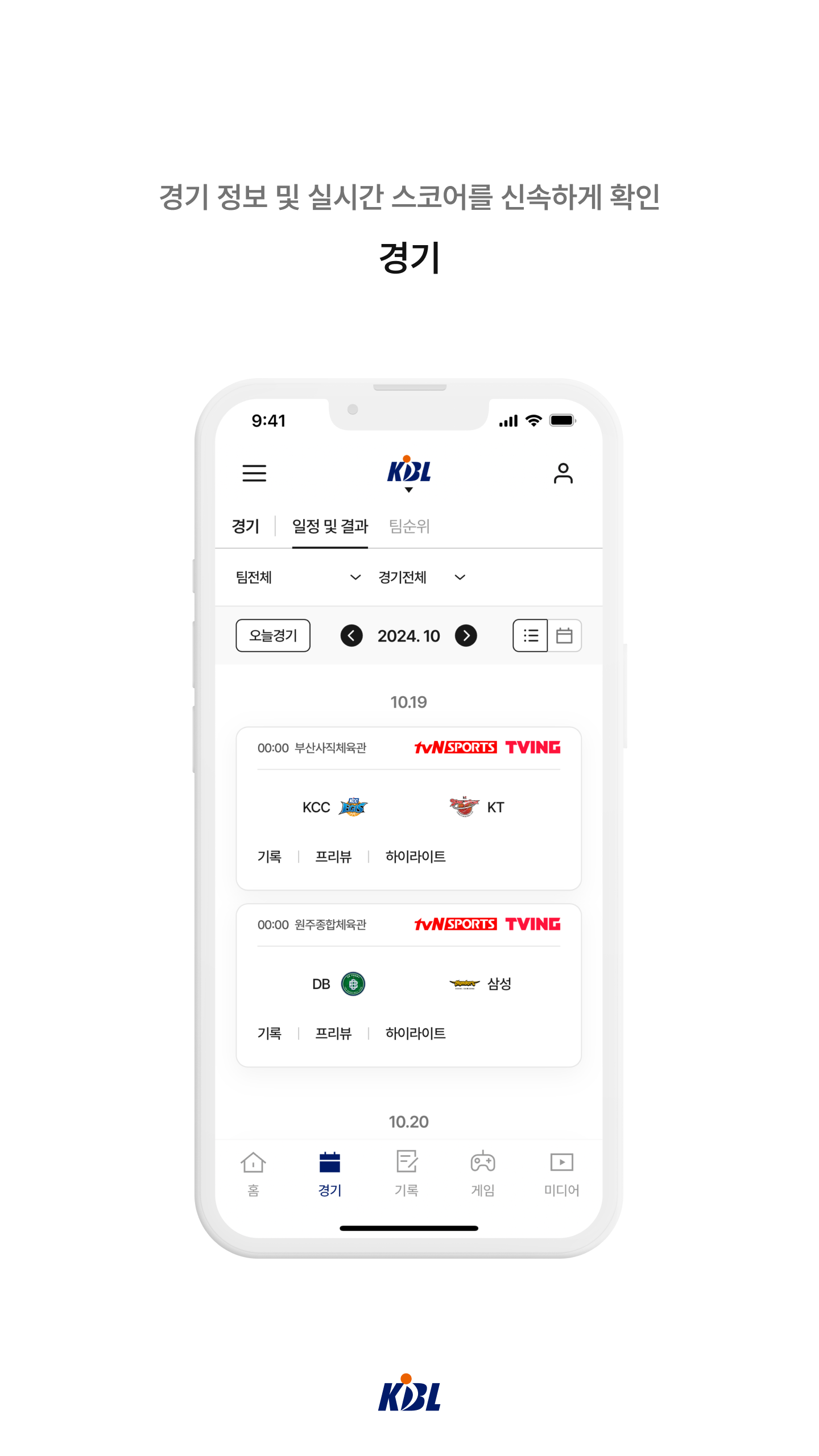The KBL official app is an application that provides information on all competitions officially hosted and organized by the Korea Basketball Federation, including the KBL and D-League as well as youth competitions, and is linked to the KBL official website (www.kbl.or.kr). You can use all services of the federation and 10 basketball teams with one account.