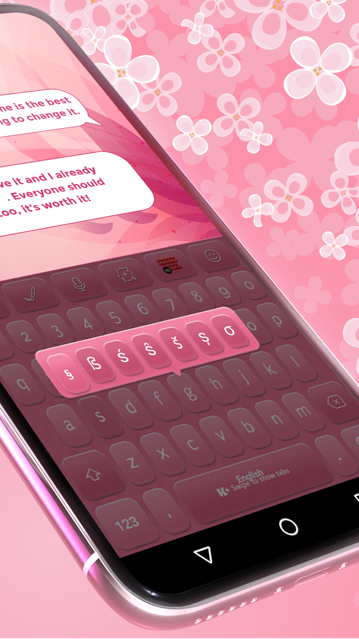 Keyboard Plus Soft Pink is a versatile keyboard that you can use to chat in all kinds of apps like: Messenger, What'sApp, Instagram chat, Tinder, Twitter and so on.