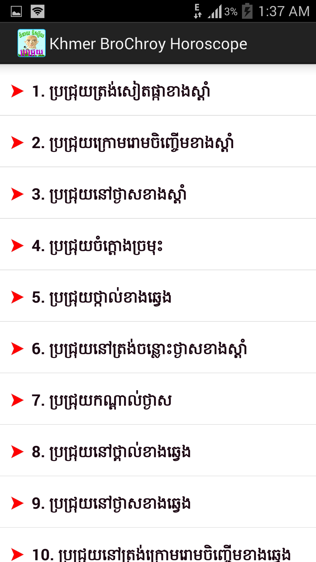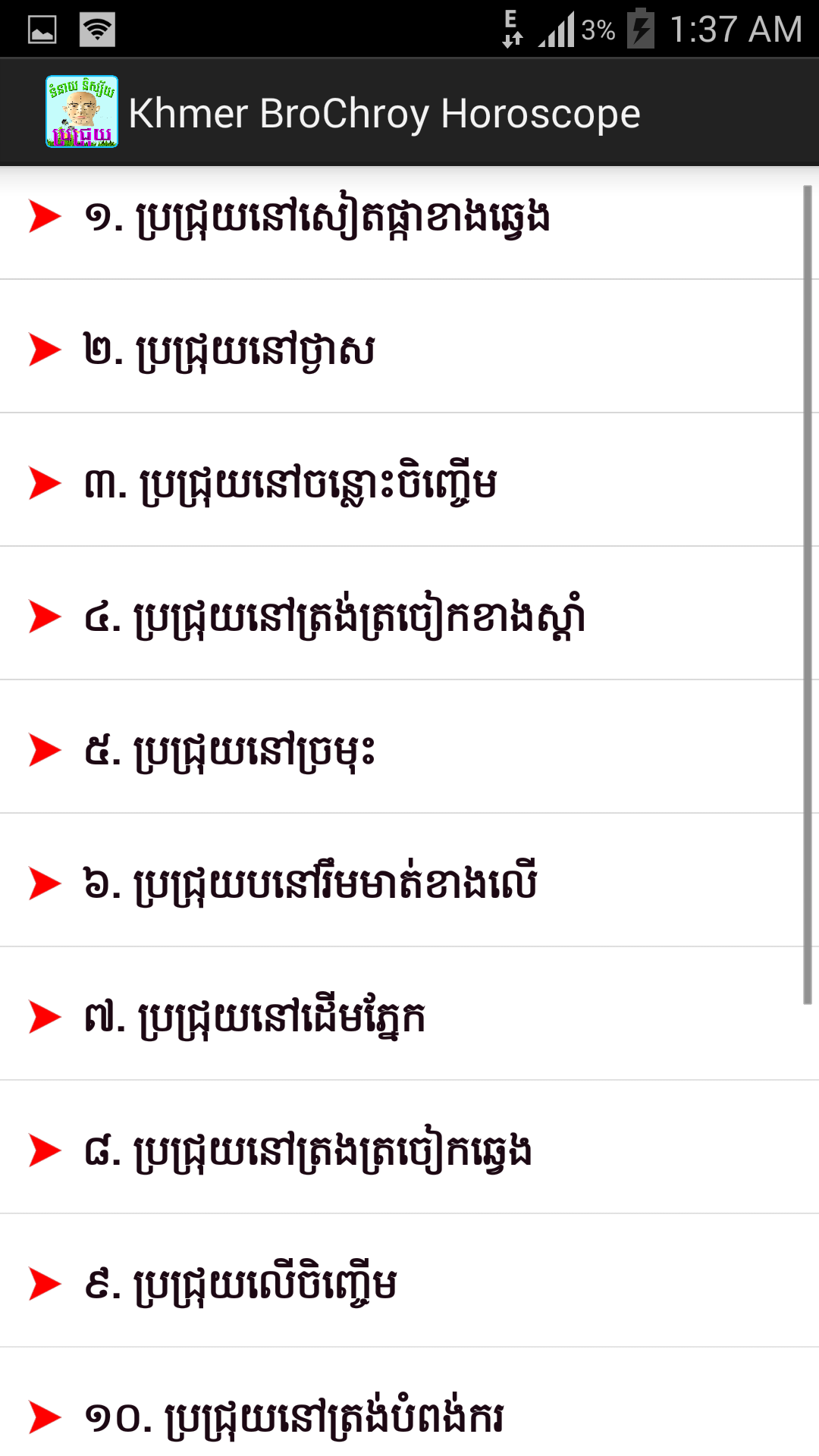 Khmer Brojroy Horoscope