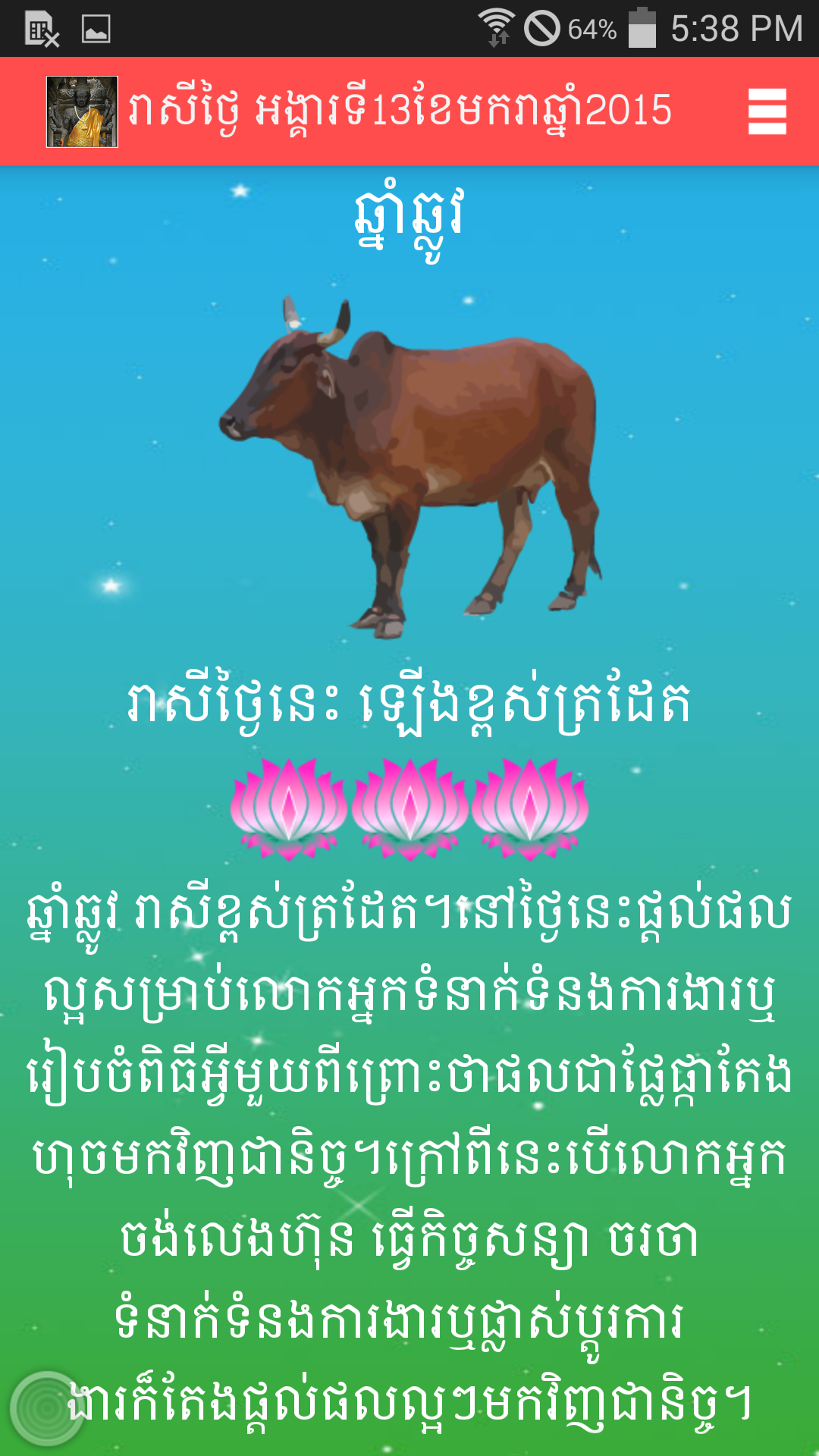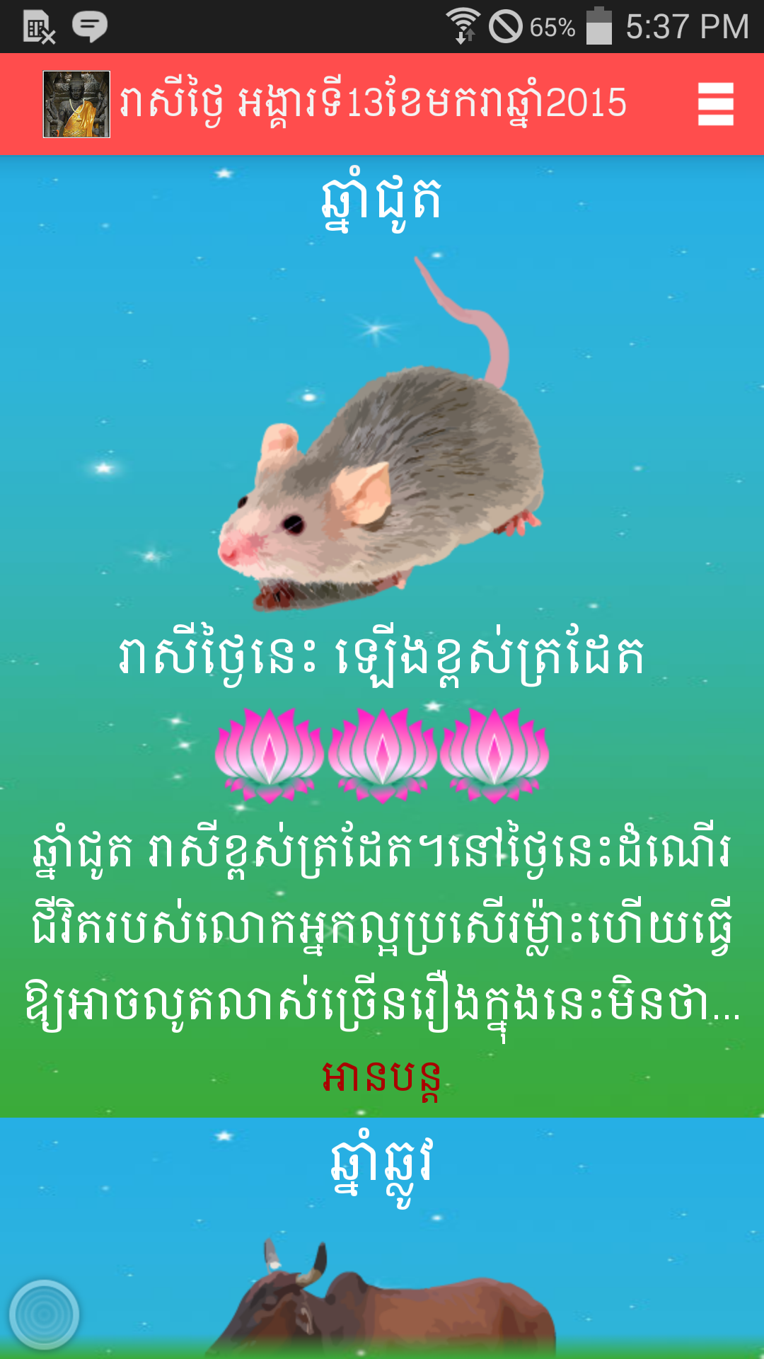 This app publishes Khmer traditional fortune telling to your smart phone everyday.