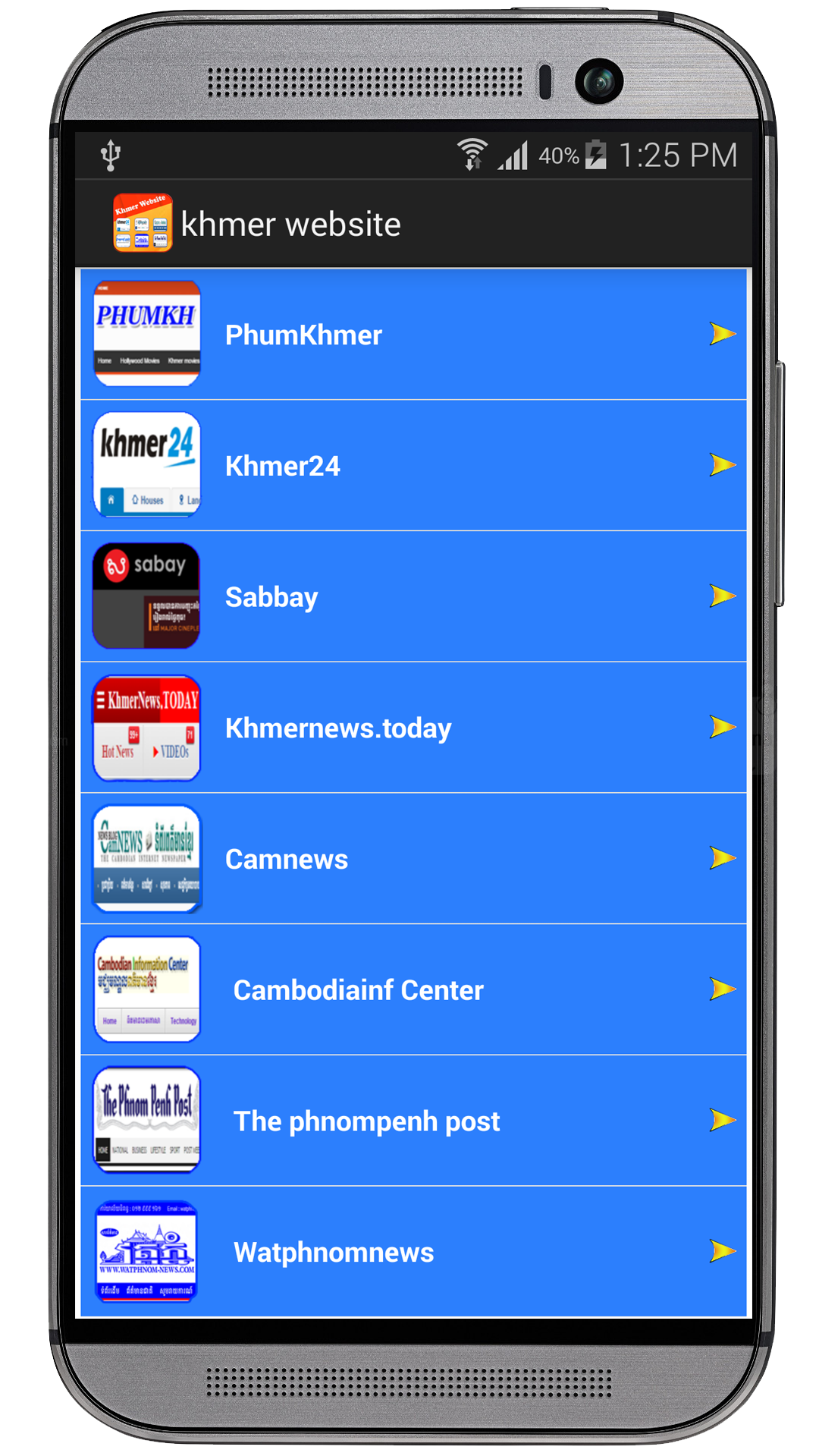 Khmer Website for Mobile (Package Name: com.khmerwebsitekh) is developed by Khmerkh-Soft and the latest version of Khmer Website for Mobile 1.0 was updated on January 22, 2015. Khmer Website for Mobile is in the category of News & Magazines. You can check all apps from the developer of Khmer Website for Mobile. Currently this app is for free. This app can be downloaded on Android 2.2+ on APKFab or Google Play. All APK/XAPK files on APKFab.com are original and 100% safe with fast download.