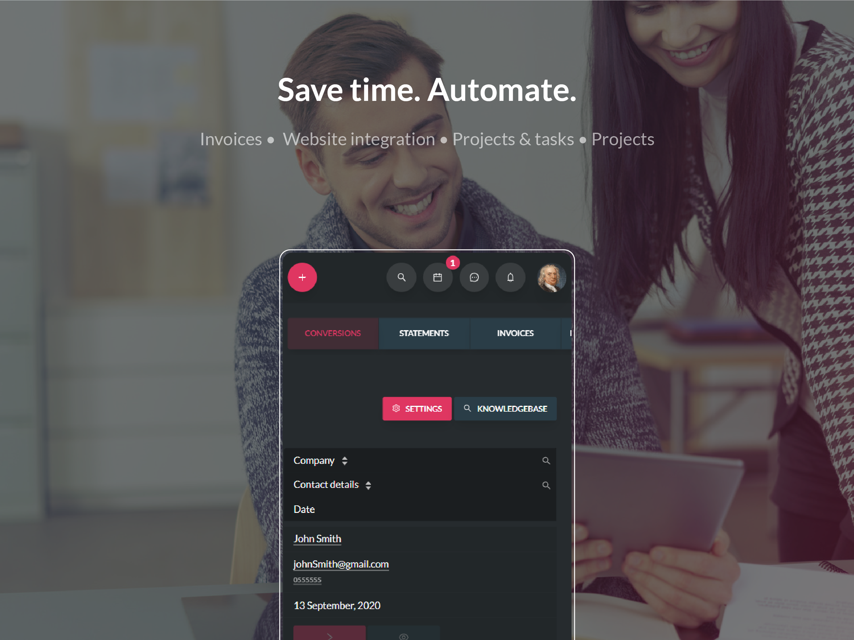 Knack is the easiest way to run your company and the best business productivity app available, with integrated CRM, accounting, project management and team collaboration. Save time, energy and money. Best of all, it's free for up to three users! CRM Easily create and track prospects and clients. You can use the app on the go, generating quotes quickly and sending them directly from the app. Make sure that a prospect never gets forgotten about again. Accounting Create quotes, invoices, statements and financial reports with a simple, adaptable system. From fast quoting, to stock management and automated invoice scheduling, the advanced features of Knack make it critical to a growing business. Projects Create and manage projects and tasks with just a few taps. You can record your task times, generate timesheets, and automatically schedule regular projects and tasks. The integrated team collaboration tools let you add as many users as you need to any project. Team Collaboration Chat to your co-workers or staff directly in Knack, send them files, and collaborate on tasks, projects and clients to make sure that your work is done quickly and efficiently. Automation Upgrade to Knack PRO and get a range of automation features to automatically schedule invoices, projects, tasks, statements, reports and a wide range of additional functions. Let Knack do the work for you, so you can concentrate on growing your business and doing a great job!