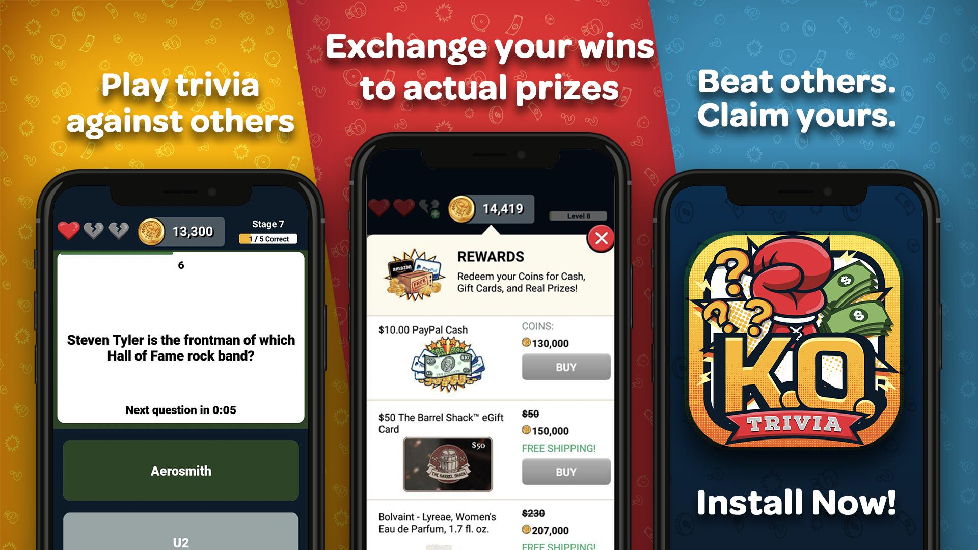 Top 5 reasons to Play Trivia for Free Rewards Prizes with KO Trivia (K.O. or Knockout Trivia):
