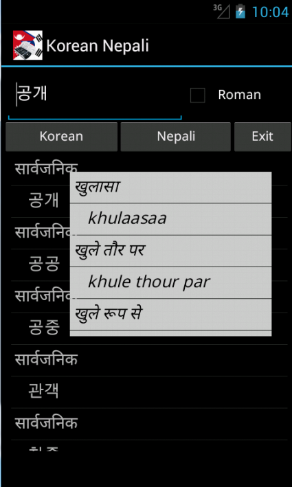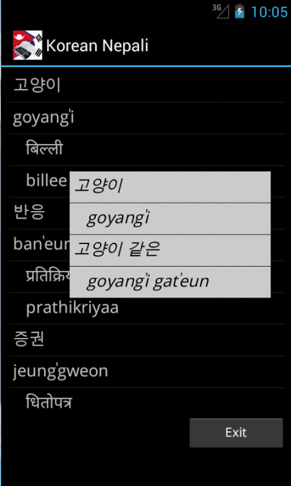 Korean Nepali Dictionary (Package Name: kor.nep.dictionary) is developed by Bede Products and the latest version of Korean Nepali Dictionary 22 was updated on January 9, 2017. Korean Nepali Dictionary is in the category of Travel & Local. You can check all apps from the developer of Korean Nepali Dictionary and find 16 alternative apps to Korean Nepali Dictionary on Android. Currently this app is for free. This app can be downloaded on Android 3.2+ on APKFab or Google Play. All APK/XAPK files on APKFab.com are original and 100% safe with fast download.