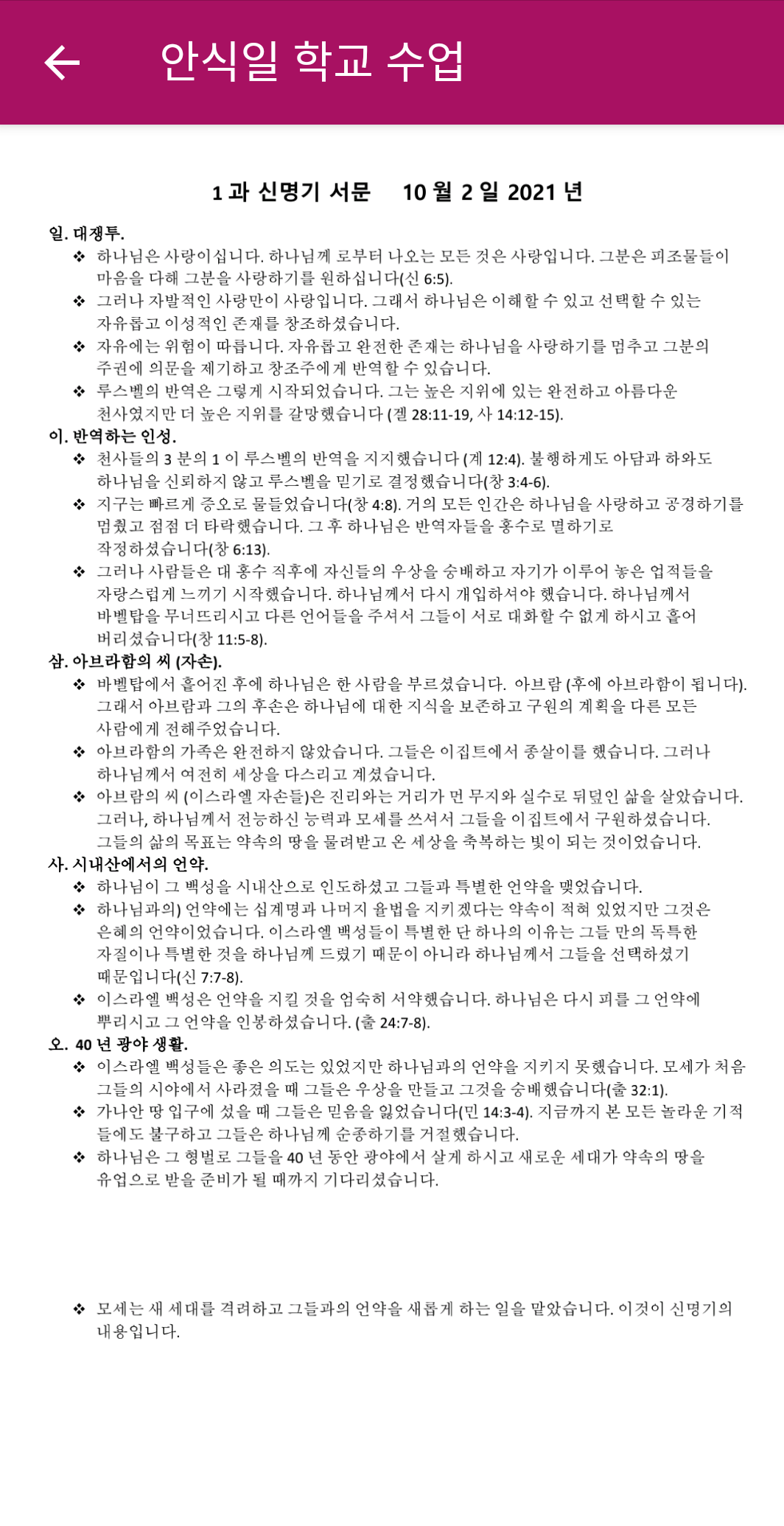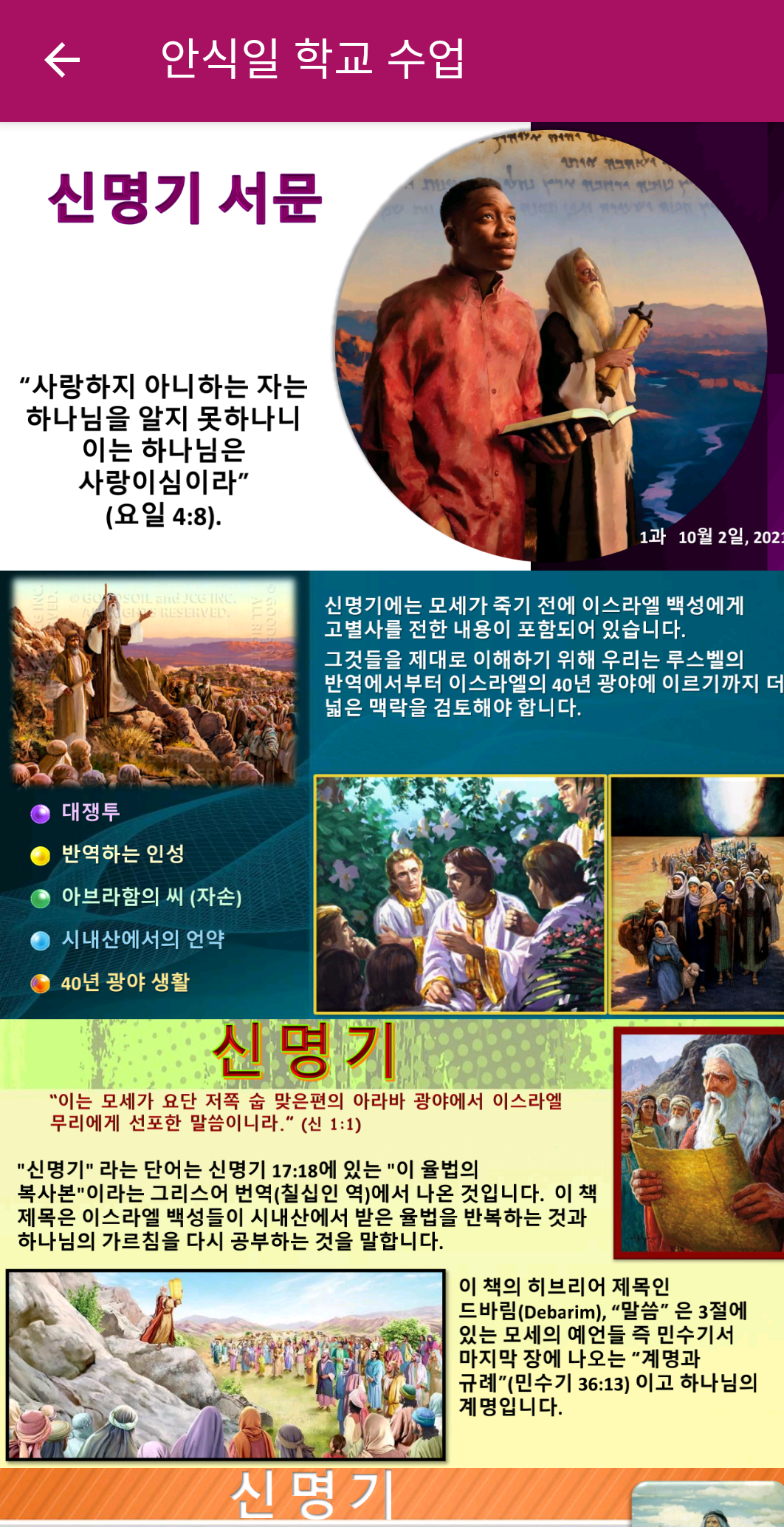 On this app, you will find a slideshow for the sabbath school program or for helping to prepare and to teach the lesson each week. Translated by: Joo Kim