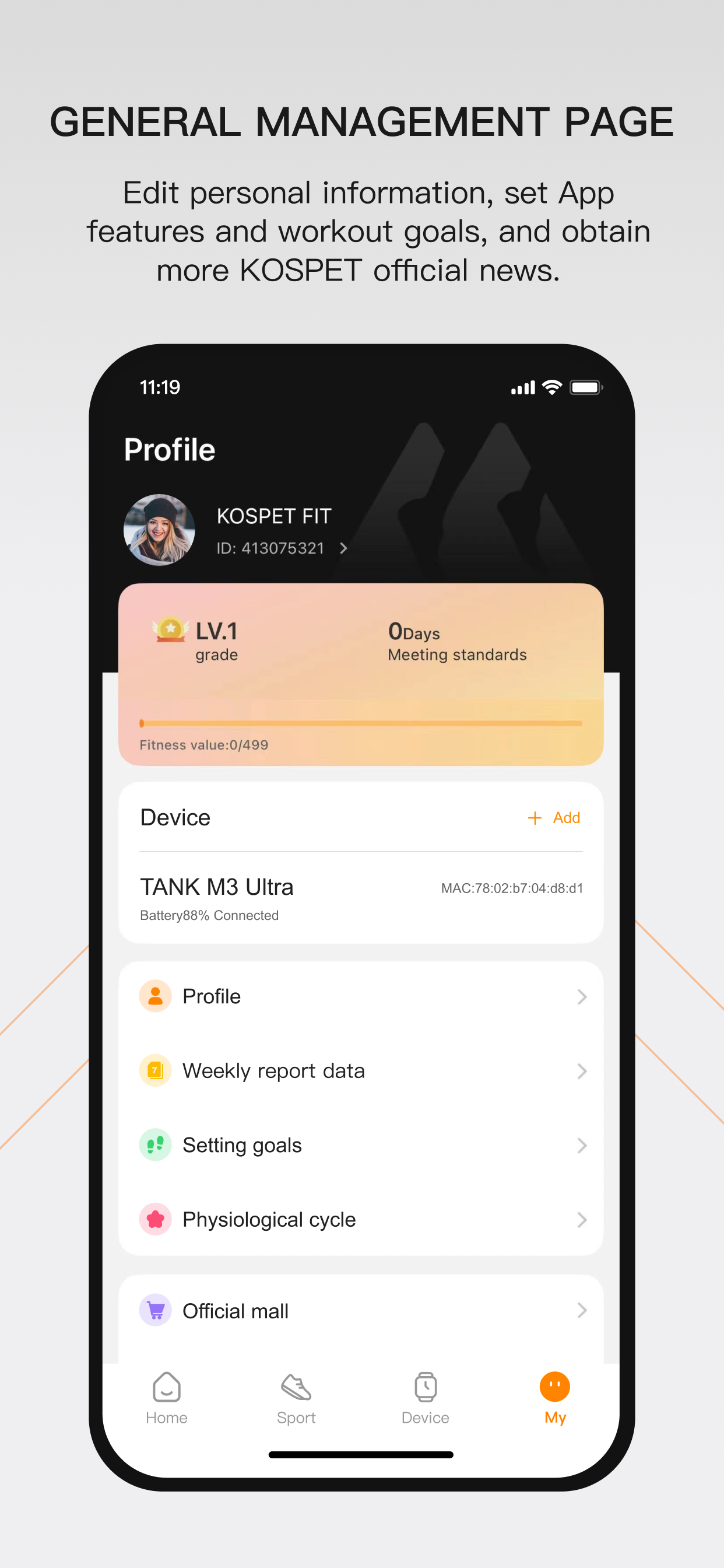 1. Reconstruct App features and redesign the user interface. 2. Compatible with new KOSPET smartwatch models seamlessly, with brand-new GPS workout tracking and more accessibility features for professional sports.