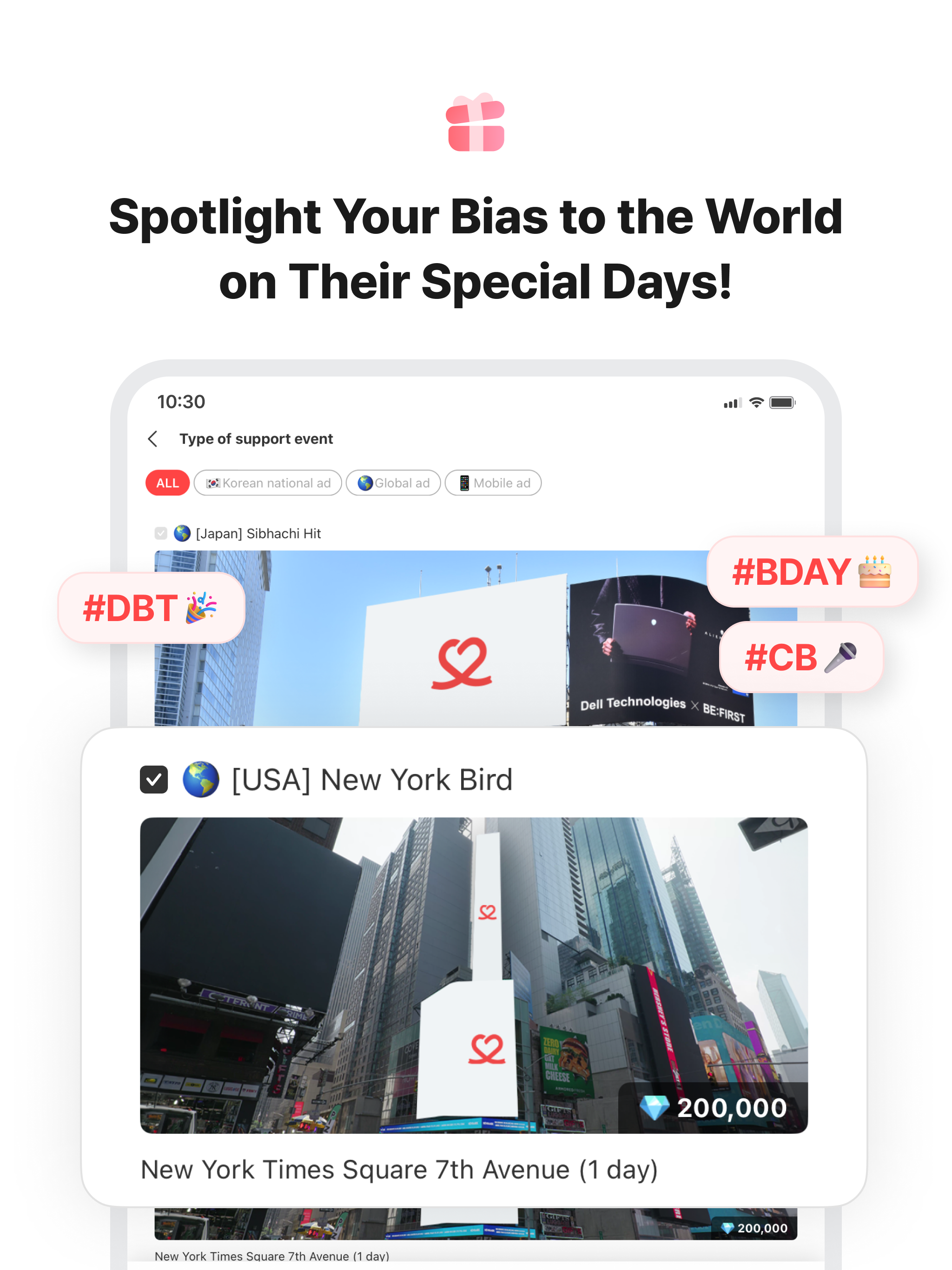 ▶ Team up with global fans to gift special ads (Subway, Large Billboards) to your idol on anniversaries.
