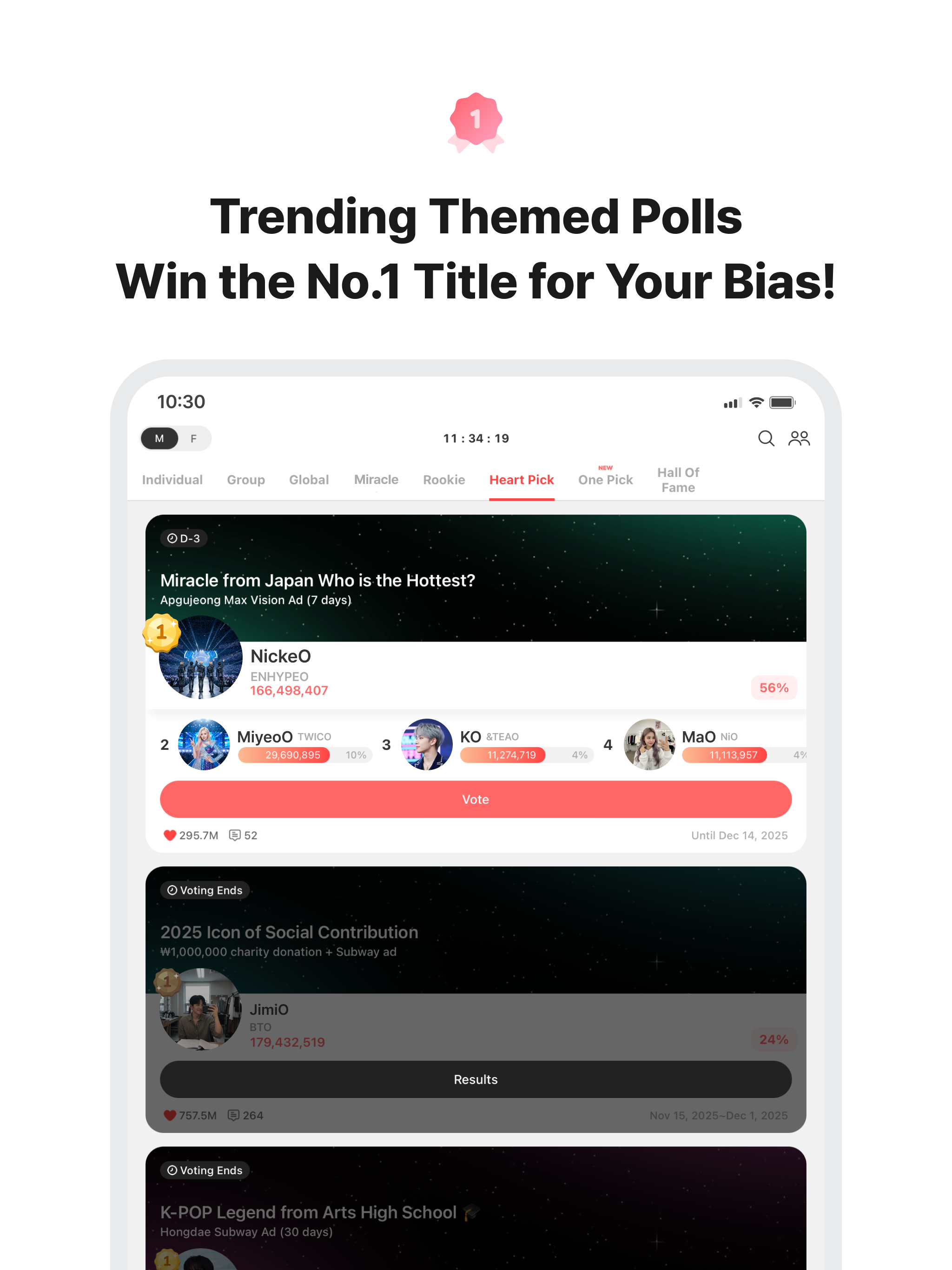 ▶ Join fun weekly themed polls like 'Best Main Vocalist', 'Visual Center Pick'