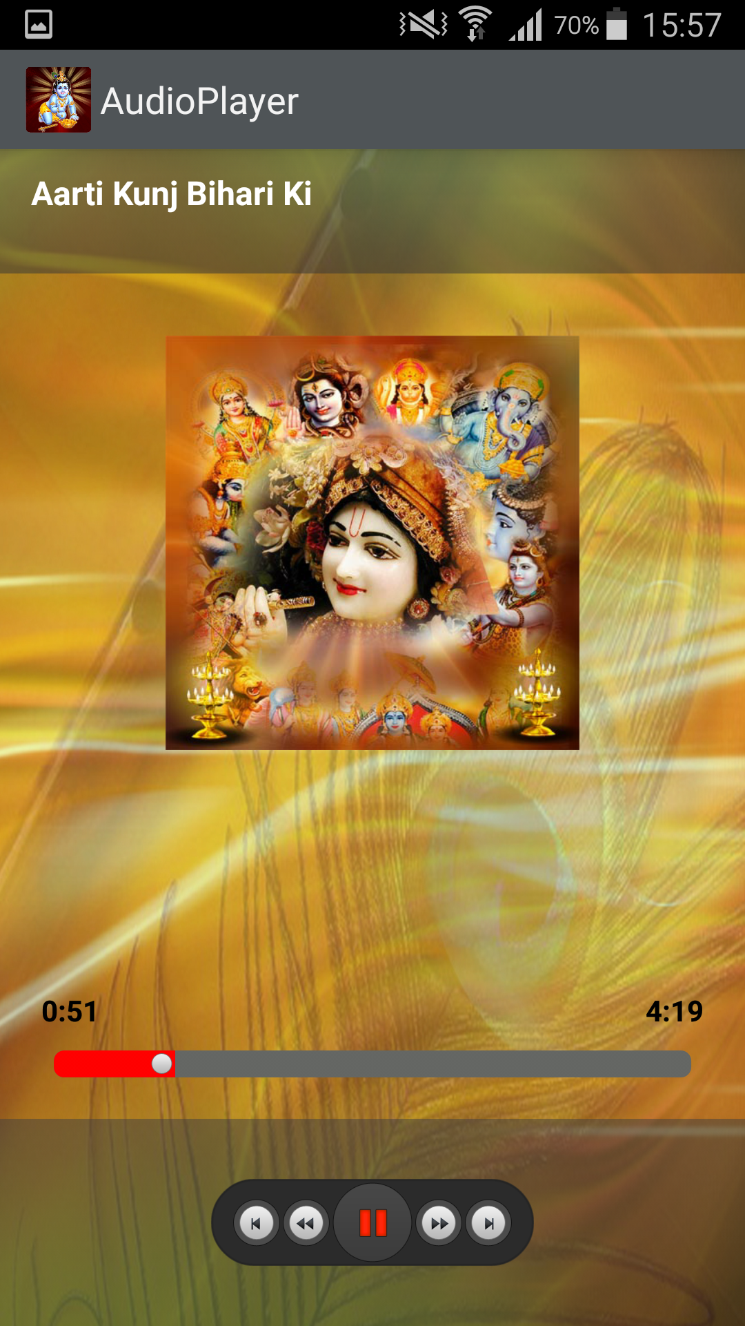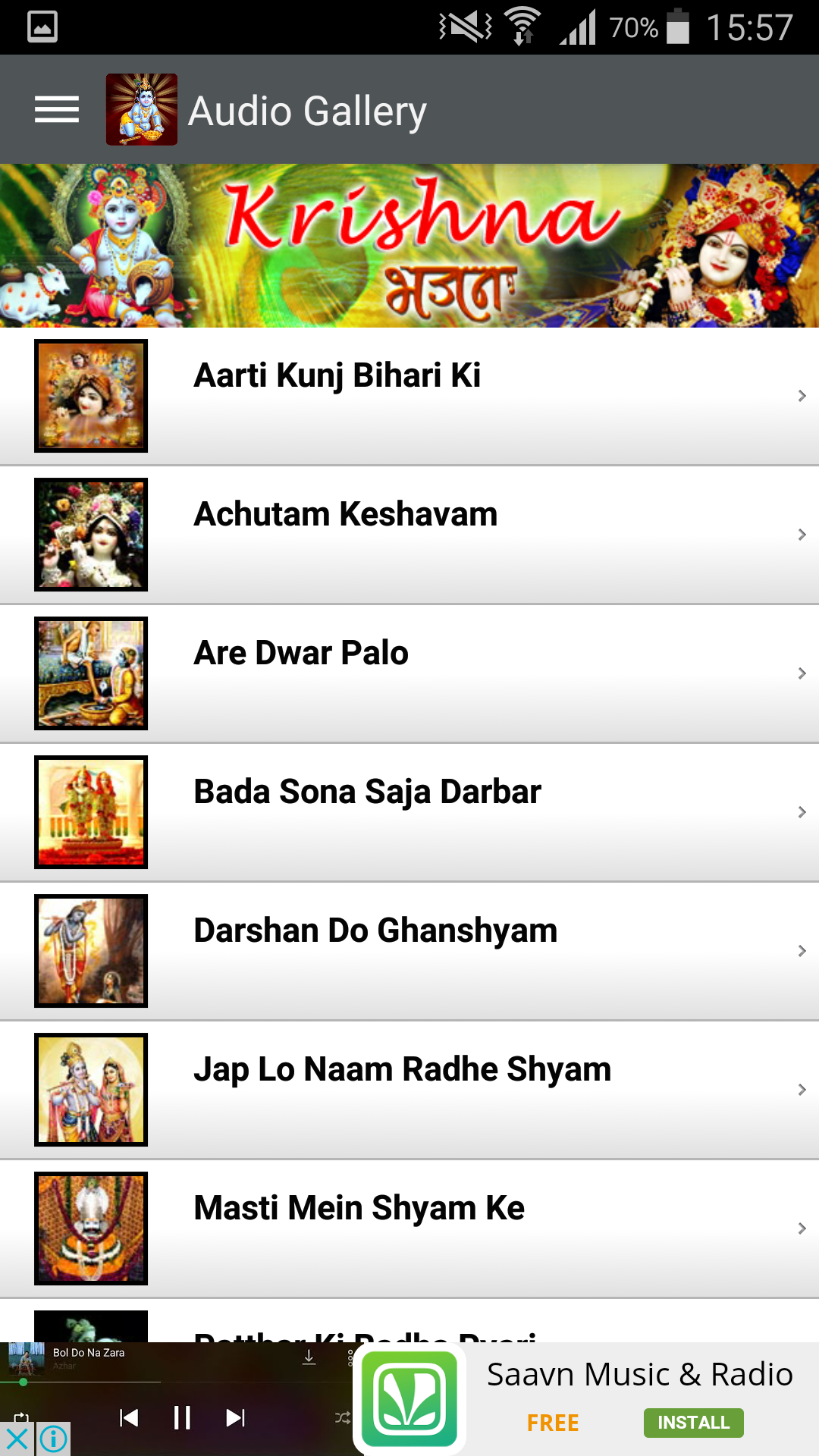 Krishna Bhajan (Package Name: com.gobindas.krishan) is developed by GoBindas Entertainment Pvt Ltd and the latest version of Krishna Bhajan 1.0 was updated on August 17, 2016. Krishna Bhajan is in the category of Entertainment. You can check all apps from the developer of Krishna Bhajan and find 3 alternative apps to Krishna Bhajan on Android. Currently this app is for free. This app can be downloaded on Android 3.0+ on APKFab or Google Play. All APK/XAPK files on APKFab.com are original and 100% safe with fast download.