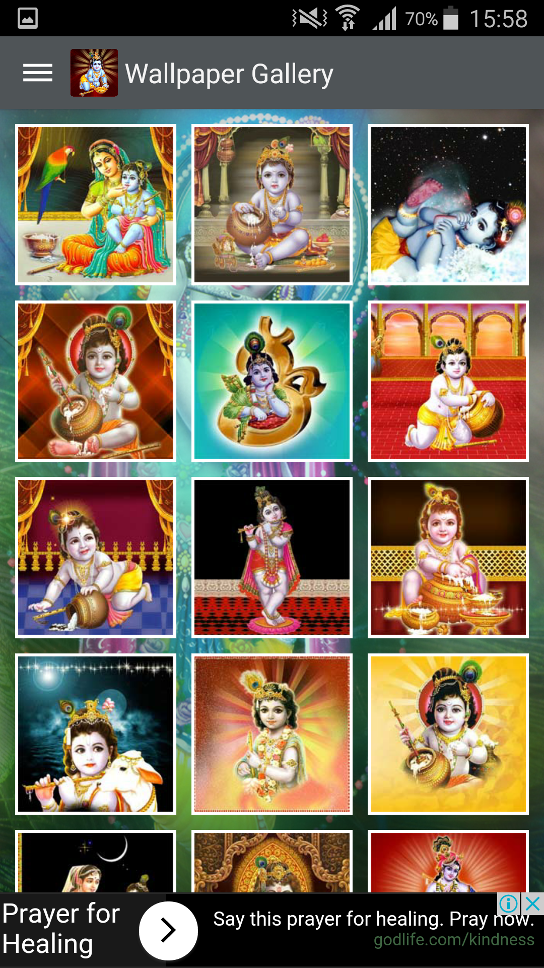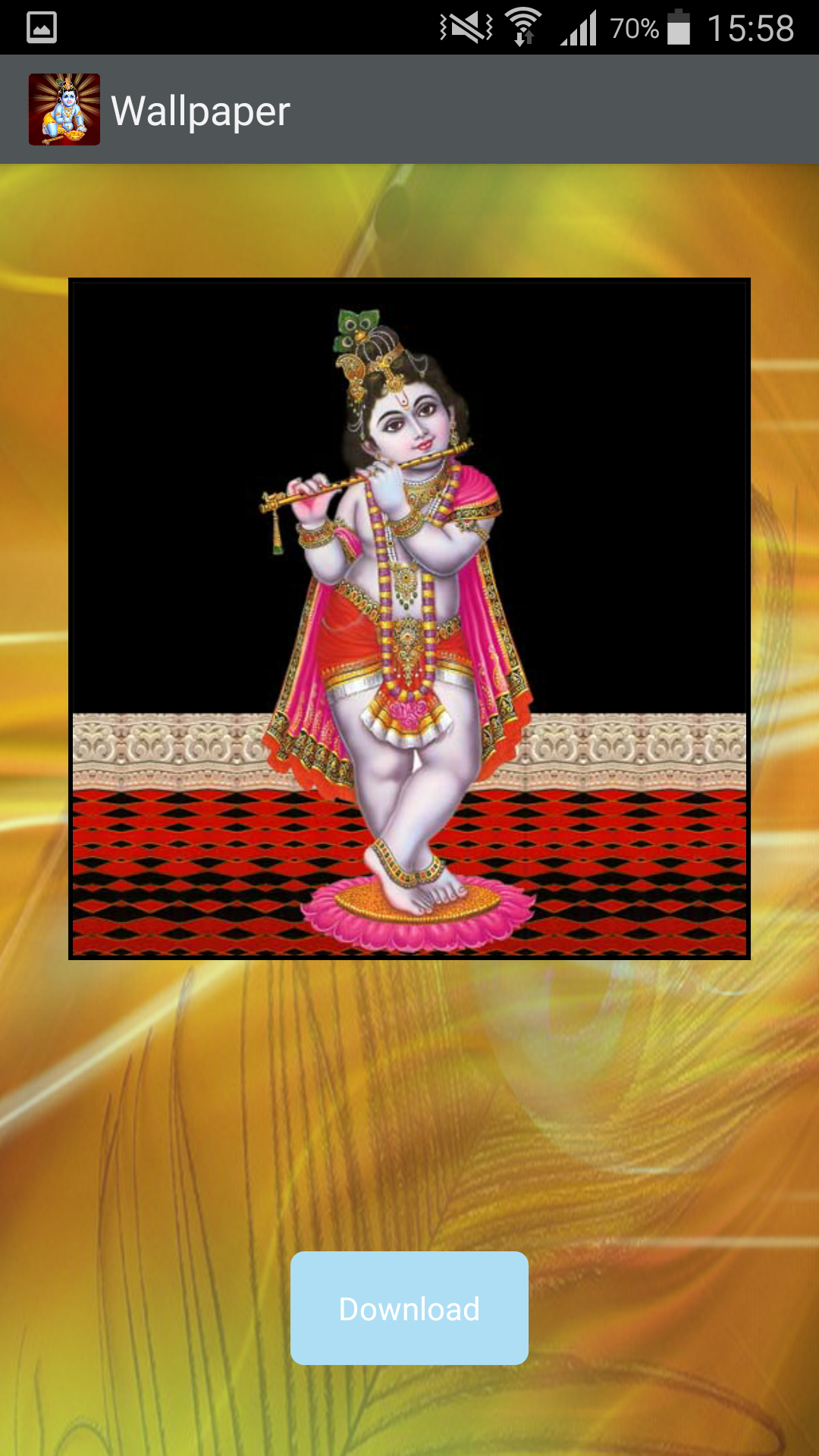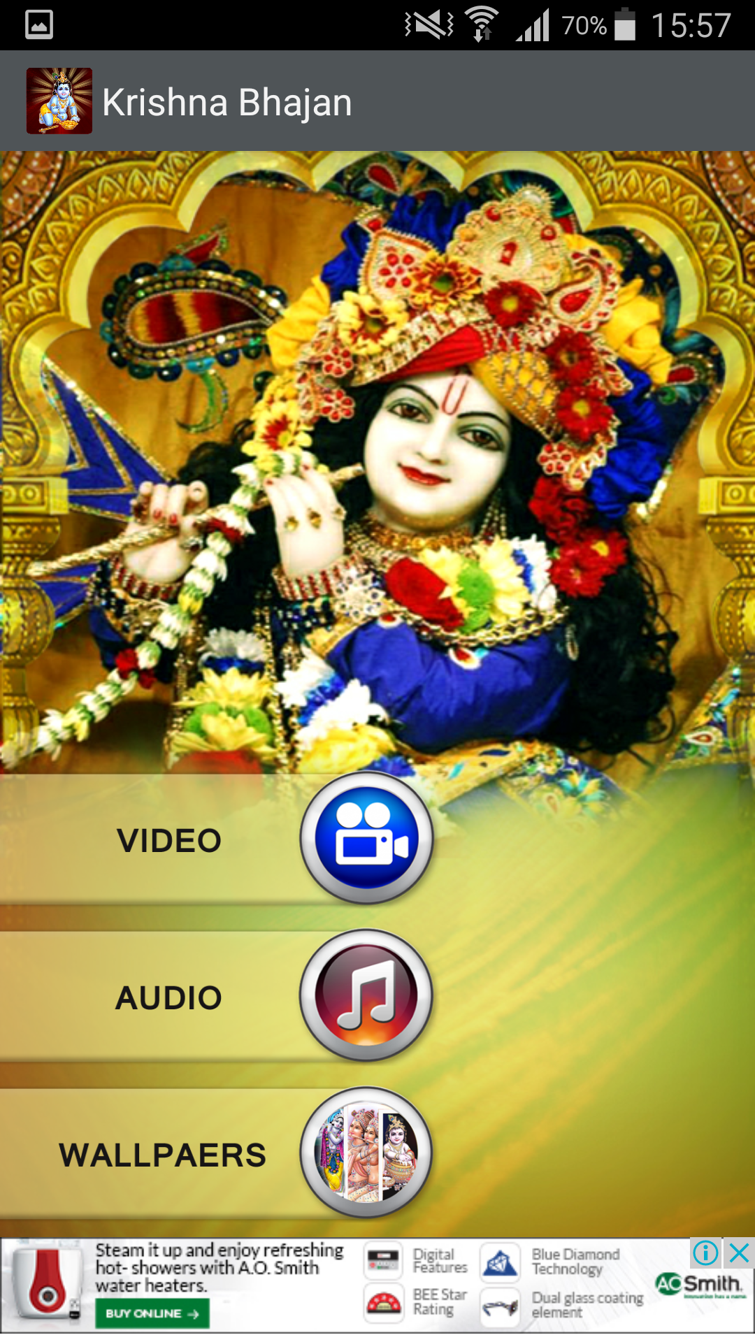 Hare Krishna! The great Lord Krishna, one of Hinduism's most famous deities. The great exponent of the Bhagavad Gita, Krishna is the ninth and the most powerful incarnation of Vishnu, the Godhead of the Hindu Trinity of deities. Here we are presenting “Krishna Bhajan App” A huge collection of Best Hindi Devotional HD Videos, Audios and Wallpapers.. Feature of the application:- The main feature of app is that the Videos will be pulled dynamically for display. Menu on the home page, User can choose three categories- Videos, Audio & Wallpapers. Specific content can be displayed for a specific time frame. The App is Free to download. Enjoy Lord Krishna App Special Features : Krishna HD Videos, Original Songs and Wallpapers Collection. Powered by GoBindas Entertainment Pvt. Ltd --- ★★ PLS LEAVE COMMENT AND RATING ★★ ---