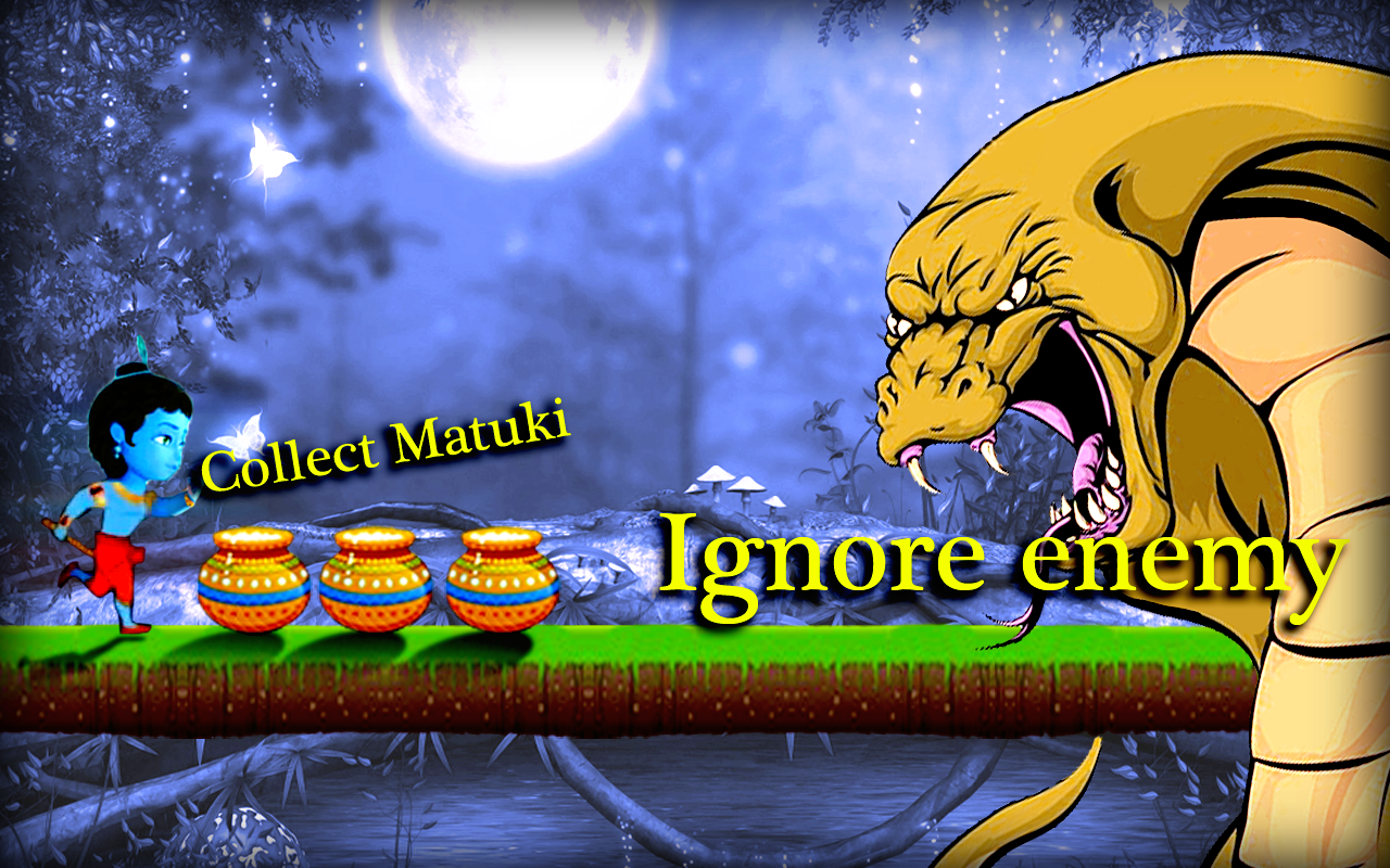 run with your friend krishna with the peacock feather. with the best Graphics and the concept of the unlimited run here we are launching the Krishna Murari Runner game For All Hare krishna murari lovers.this janmastami the hindu divine krishna rocket with the action & adventure mobile game. Jump, slide, dodge obstacles , collect the matuki of a butter which makes a high score.Indian Country.