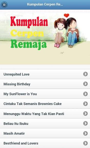 Ini adalah sebuah aplikasi yang berisi sekumpulan cerita pendek tentang remaja karya anak bangsa. Selain itu aplikasi ini juga dapat dinikmati secara offline, jadi tanpa koneksi internet pun tetap dapat dinikmati apabila sudah mendownloadnya. Terima Kasih Semoga Bermanfaat ^_^