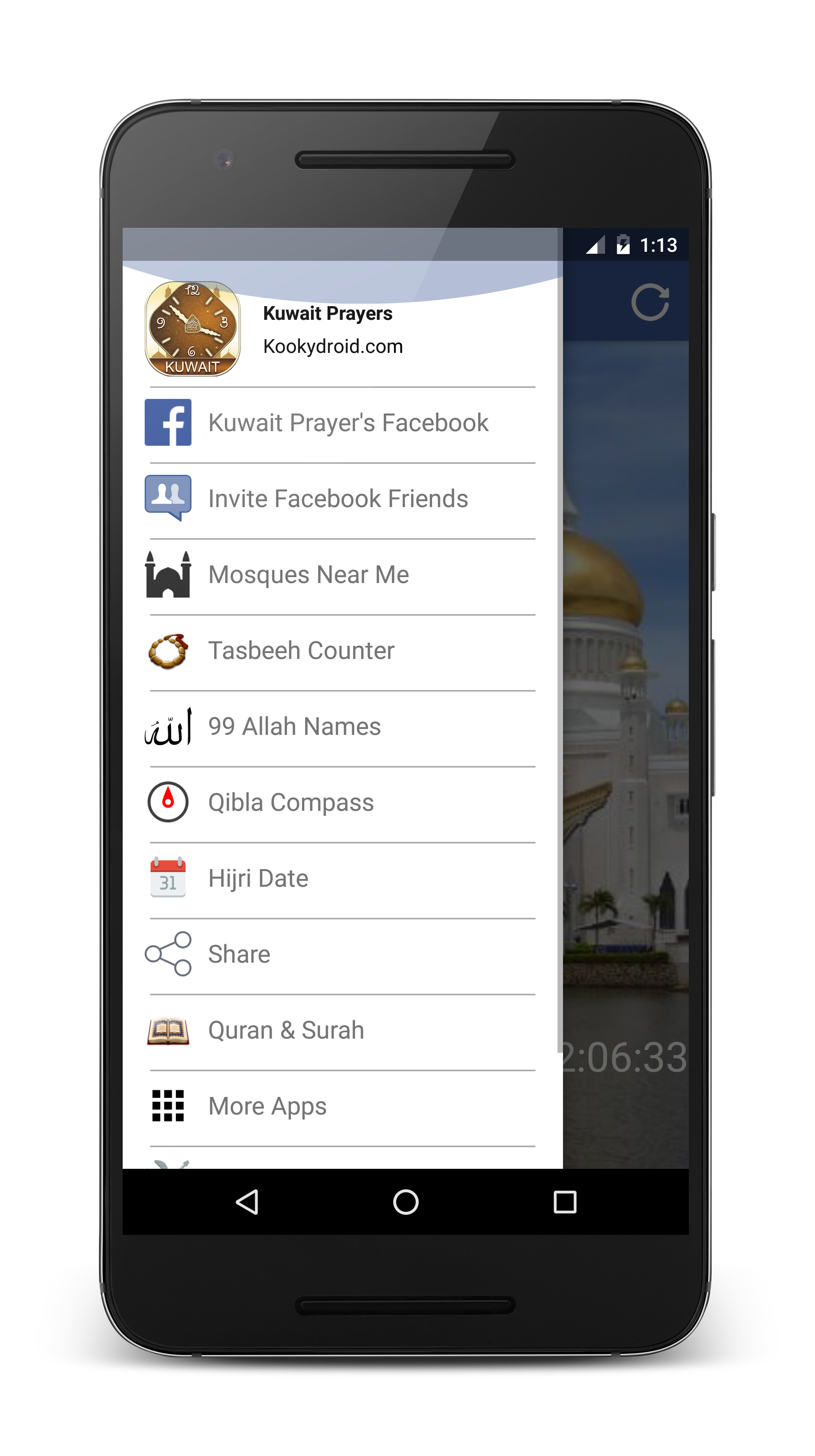 Kuwait Prayer Times (Package Name: com.kookydroidapps.salahtime.kuwaitprayertimings) is developed by Kookydroid Apps and the latest version of Kuwait Prayer Times V2.0 was updated on June 1, 2016. Kuwait Prayer Times is in the category of Lifestyle. You can check all apps from the developer of Kuwait Prayer Times and find 65 alternative apps to Kuwait Prayer Times on Android. Currently this app is for free. This app can be downloaded on Android 4.2+ on APKFab or Google Play. All APK/XAPK files on APKFab.com are original and 100% safe with fast download.