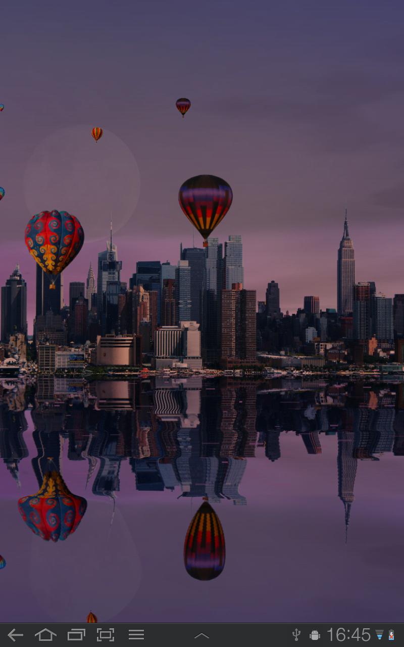 Beautiful lakeside scenes reflecting in the calm waves of the foreground water in this live wallpaper. Clouds are moving in different altitudes. Hot air balloons slowly float in the air. Colors and light change dynamically during the day. The early morning starts with a beautiful sunrise with dazzling colors. The sun moves over the sky during the day and finally vanishes behind the horizon a magical sunset. When the afternoon evolves into night the moon becomes more and more visible until midnight when it slowly starts to fade again as the new day dawns. Use the automatic sunrise/sunset premium feature to let the app automatically calculate correct sunrise and sunset times for your gps location (check runs once a day, and GPS must be on). Built in backgrounds: New York, London, Venice, Eilean Donan Castle (Scotland), Mountains (USA), Hammarby Sjöstad (Stockholm) Downloadable backgrounds: Chicago, Hong Kong, Sydney, San Francisco, Toronto (Canada), Stockholm Royal Palace, Stockholm Archipelago Island (Långgarn), Dubai, Iron Mosque (Putrajaya, Malaysia), Palm Tree Beach (Cook Islands), Barn (Mud Lake, Whitby), Paris (Eiffel Tower & Seine), Seattle The Internet and write external storage permissions in the full version is because you can for no extra charge download new backgrounds from the Internet, and they are saved on the sd-card. In the free version some settings are locked. The ones with (full) in the list are only available in the full version. - Change background - Use built in backgrounds - Download backgrounds (full) - Distance to background - Wave size (full) - Number of hot air balloons (full) - Surface activity (full) - Clouds speed (full) - Show/hide high and low clouds (full) - Show/hide the sun - change position and size of the moon (full) - Set any time of day, or (full) - Use real time for seamless color shifts (full) - set true color for 24 bit color depth (full) In the dynamic real time mode, not even one second of the wallpaper is equal to another in a 24 hour period. More background scenes to choose from will be added in the near future! This wallpaper with live water reflections is based on OpenGL, which means that your phone's GPU is working instead of the CPU, making much less impact on the overall phone performance. Also, the wallpaper is only active when visible, so battery life will not be affected much. Photo credits (flickr users): London: Son of Groucho Manhattan: Eva Abreu Venice: Anna Fox Eilean Donan Castle: Shadowgate Mountains: Taylor McBride Toronto: Blair Stirrett San Francisco: Jérôme Decq Stockholm Royal Palace - Anders Adermark Långgarn - Anders Adermark Hammarby Sjöstad - Anders Adermark Sydney Opera House: Richard Taylor Hong Kong: torbakhopper Dubai & Burj Al Arab: ~Pyb Palm Tree Beach: Robert Young Barn: Rick Harris Paris: Jiuguang Wang Seattle: Chas Redmond Iron Mosque: Ezry Abdul Rahman Chicago: George Tziralis Balloons: turtlemom4bacon, falcon1961 & Eric Ward Moon: Moon: Luis Argerich Thanks everyone for the creative commons licenses!