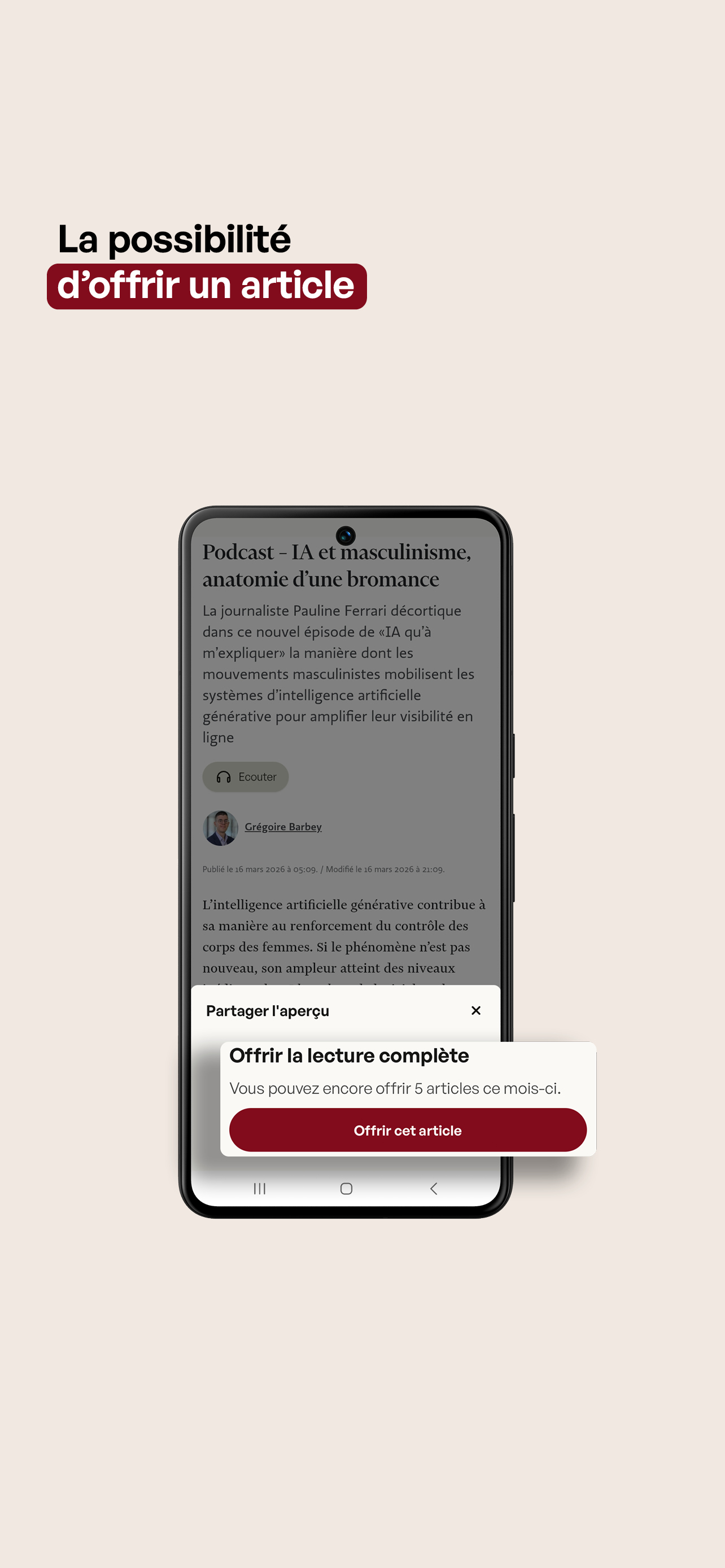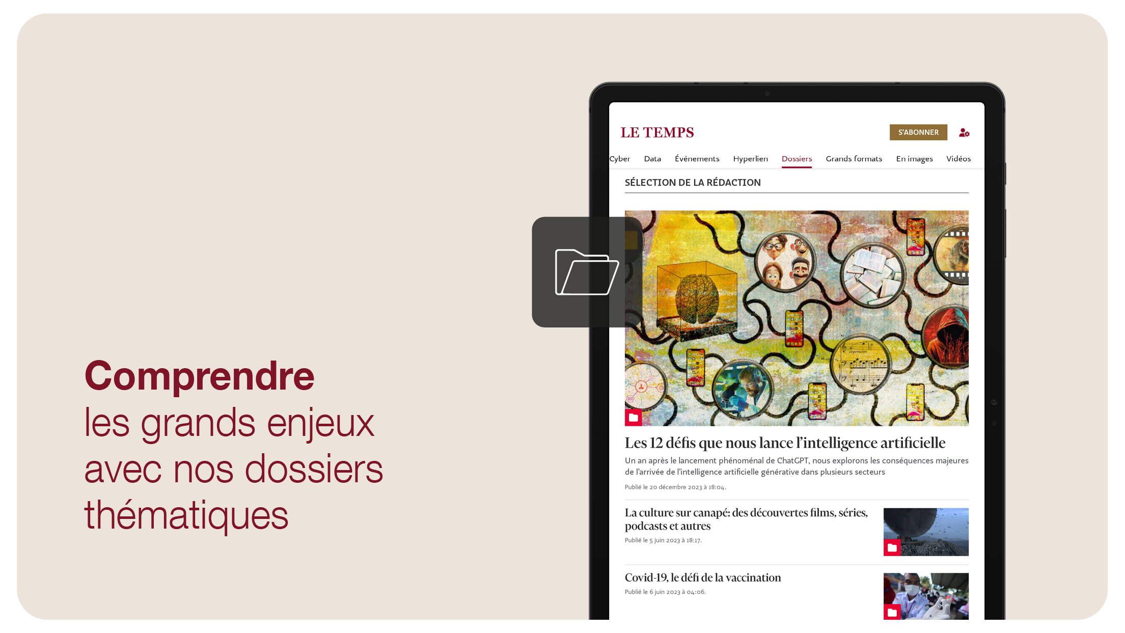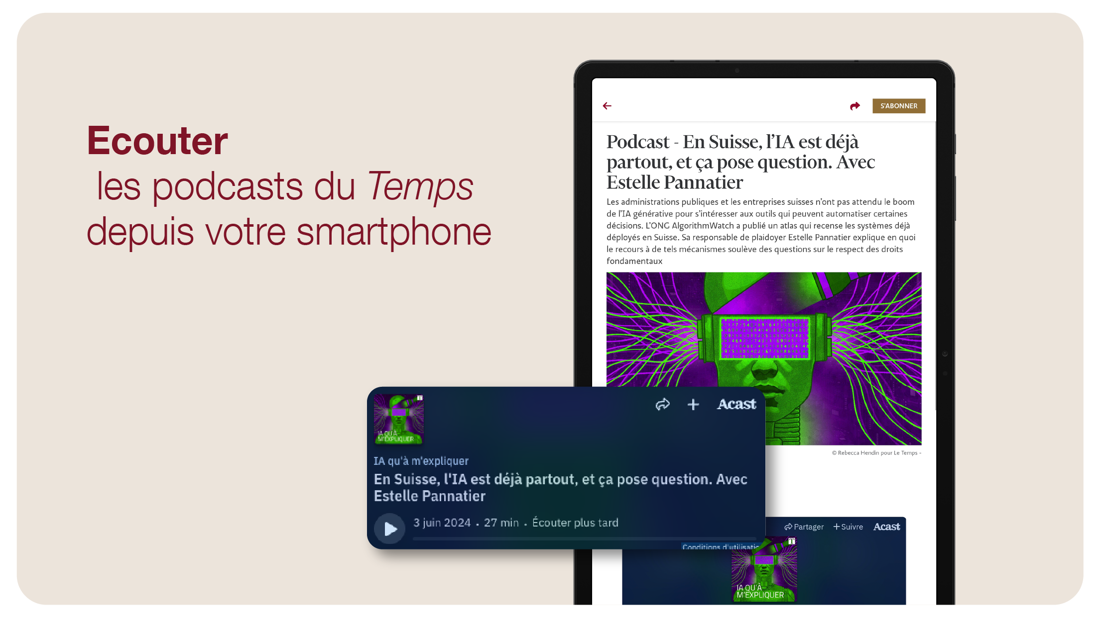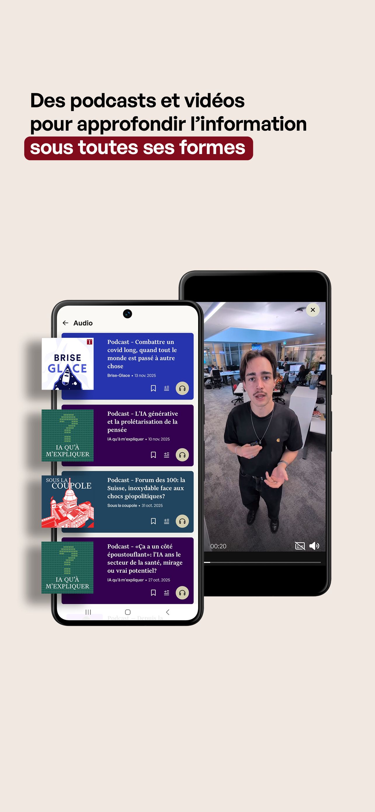 Le Temps deciphers Swiss and international news on a daily basis! Dive into the heart of the news from your smartphone, access all the articles, surveys and reports from our editorial staff and explore in depth the subjects that interest you. Browse through our different themes and formats (articles, e-paper, videos and podcasts) and enjoy a unique user experience. 🔴 Follow the news in real time: Follow the news continuously thanks to our notifications and our “continuous” feed. Find all the news in French-speaking Switzerland and nationally in our Switzerland section Follow international news thanks to our correspondents abroad ✅ Reliable and in-depth information Explore our investigations, reports and analysis on the themes that interest you: Economy, Politics, Science, Culture, Sport… Also discover our large formats and our files to understand the challenges of today and tomorrow. ⏩ Time on video Culture, economy, politics, testimony… Find all the videos from Le Temps to understand the news Follow our series and reports to tell the world Share our videos 🎙️Time podcasts Listen to all episodes of Le Temps podcasts, as soon as they are released, from the application Discover the new episodes of Brise Glace, the podcast that focuses on what we dare neither say nor ask of the people around us Dive behind the scenes of Swiss politics with Sous la coupole, the podcast that deciphers political news 📰 Read the newspaper online View the PDF version of the newspaper directly from the application Access PDFs of T, the lifestyle magazine of Le Temps, and thematic supplements 👥Subscribe to Le Temps Unlimited access to all our online content: news, reports, videos, podcasts, etc. The paper newspaper delivered to your home or accessible online A privilege program with exclusive events and benefits Discover our subscription offers from 29 CHF per month. Already subscribed? Log in to your account to enjoy unlimited access to our content and manage your subscription directly on the app. 📌With the Time app, stay connected to the news: An editorial staff of 150 journalists and correspondents in Switzerland and abroad Reliable and verified information Daily Swiss and international news Surveys and reports to better understand how the world works ➡️ Download the Le Temps application, the leading Swiss media. _________________________________________________________ 📩 Contact us: Do you have a question, a comment or do you encounter a technical problem with our application? Do not hesitate to consult our FAQ or write to us using the “Contact” section accessible in the application settings General conditions and respect for your privacy Our general sales conditions are available here: https://www.letemps.ch/conditions-generales-vente We take the protection of your data seriously. Consult our data protection policy (https://www.letemps.ch/politique-de-confidentialite) to find out more about how we process your personal information.