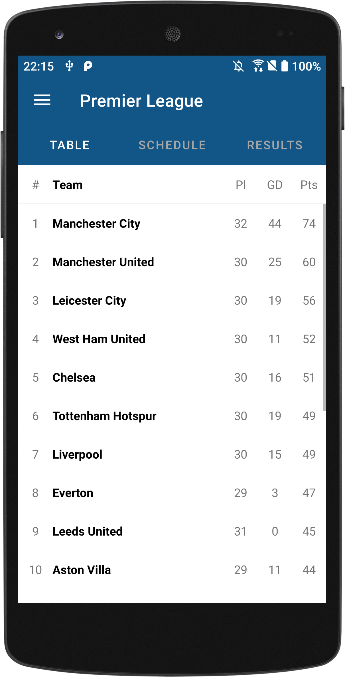 League Soccer - result, schedule, table