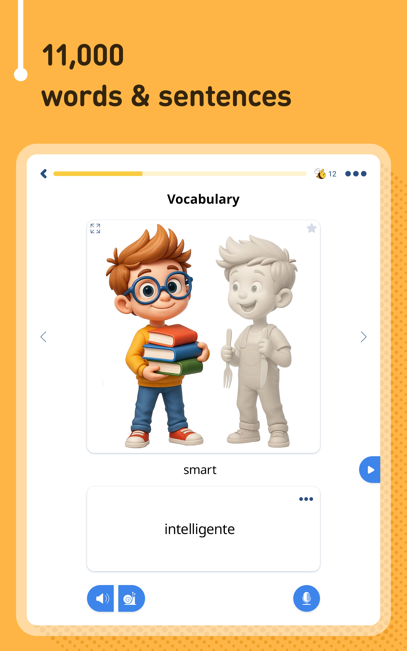 Learn Italian from 61 native languages, for free & offline, with FunEasyLearn. Learn to READ 📖 WRITE ✍ and SPEAK Italian 💬 Discover the fun & easy way to learn all the reading rules, all the words you’ll ever need and all the useful phrases in the Italian language. 🚀 Contents • 6,000 Italian words (constantly growing): the most common nouns, verbs, adjectives, etc., categorized into 7 levels and 200 topics; • 5,000 Italian phrases (frequently used): the most important phrases for daily conversations and travelling, categorized into 10 levels and 120 topics. Enhance your vocabulary by learning words, sentences and expressions for beginner, intermediate and advanced learners. 🔔 Why learn Italian with FunEasyLearn? FunEasyLearn reinvents language learning. Our team of linguists and teachers have developed a unique language learning strategy. The secret lies in combining an alphabet with all the reading rules, all the necessary words and a practical phrasebook into one app. This allows our users to read a word or phrase, pronounce it correctly, associate it with an illustration and practice it with listening, writing and speaking games. 🏆 Top features Hand-drawn illustrations – memorize the new vocabulary faster with intuitive illustrations; Professional audio recordings – listen to audios recorded by native speakers; Detailed statistics – analyze your results and track your progress; Review manager – review everything you learn; Smart search – find quickly the words and phrases you need; Hide what you know – hide the content you already know; Speech recognition – improve your pronunciation; Offline – use the app anywhere in the world, with no internet connection. 💼 Italian for business Get access to special Italian lessons created for your business. We provide specialized courses for taxi drivers, hotel & restaurant staffs, flight-attendants, shop-assistants, etc. ✈ Italian for travelling Learn how to book a hotel room, order a meal in a restaurant, ask for directions, carry out a conversation and speak confidently with the native speakers. 🙌 Italian for adults We adapt the contents depending on the age of the learner. Both you and your kid can learn Italian and have fun. FunEasyLearn Free Subscription Subscribe for FREE, with the flowers you earn while playing language learning games. Learn Italian, play for free! It’s fast & easy. 📴 📥 Download the FunEasyLearn Italian course right now! Recommend the app to your friends and get a reward. Rate us and write a review ⭐⭐⭐⭐⭐ It would mean a lot to our team! Contact us: https://www.FunEasyLearn.com/