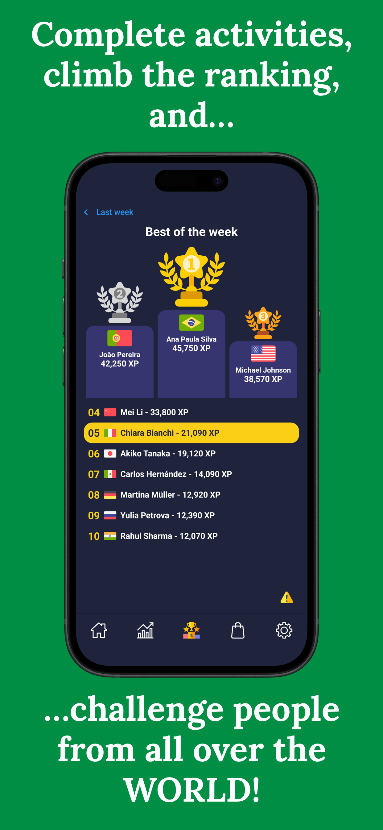 - Join the weekly ranking and compete with other users!