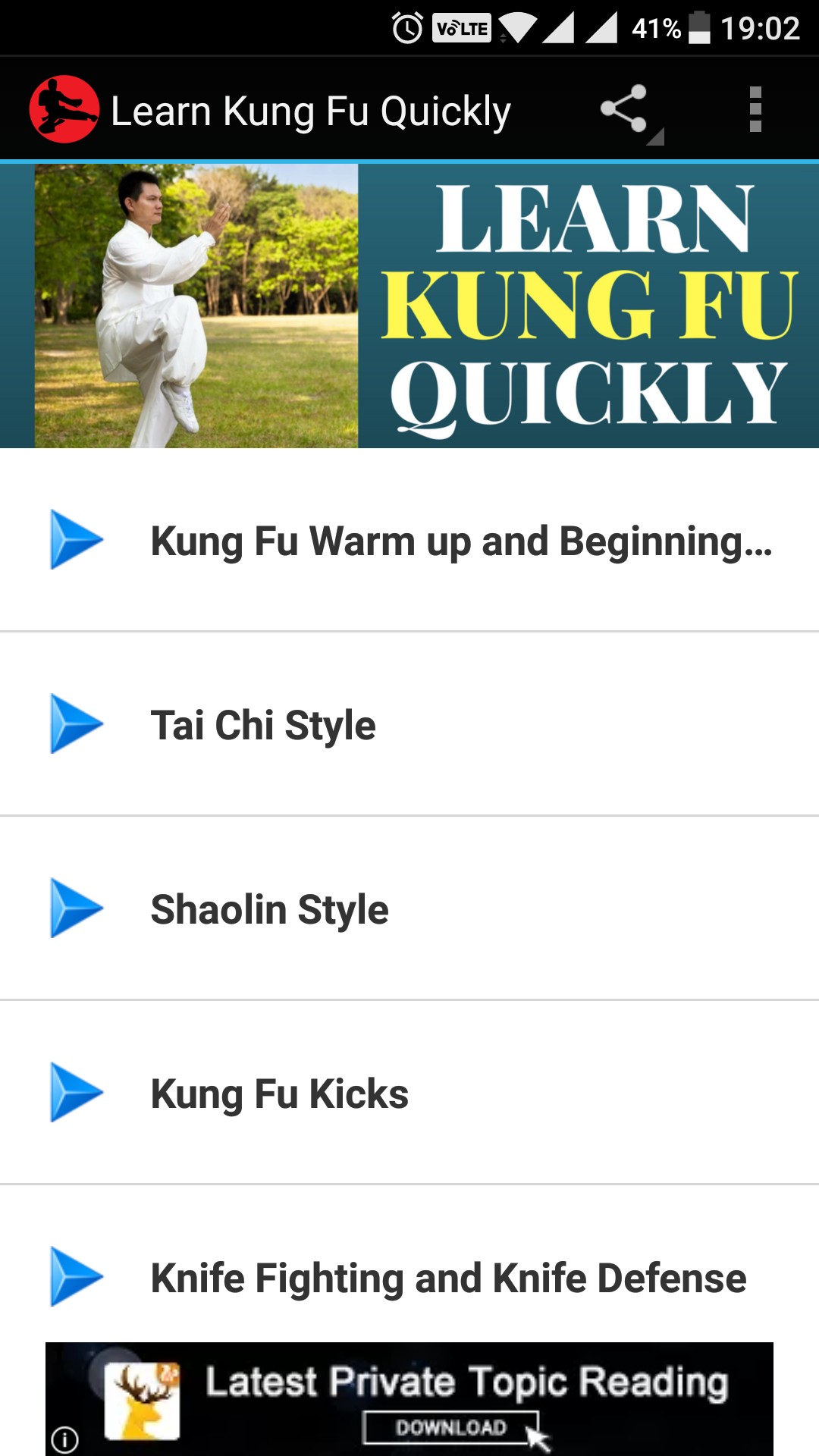 Learn Kung Fu Quickly (Package Name: com.andromo.dev385961.app602733) is developed by Narayani Droliaz Apps and the latest version of Learn Kung Fu Training 2020 6.0 was updated on July 19, 2020. Learn Kung Fu Training 2020 is in the category of Sports. You can check all apps from the developer of Learn Kung Fu Training 2020 and find 45 alternative apps to Learn Kung Fu Training 2020 on Android. Currently this app is for free. This app can be downloaded on Android 4.1+ on APKFab or Google Play. All APK/XAPK files on APKFab.com are original and 100% safe with fast download.