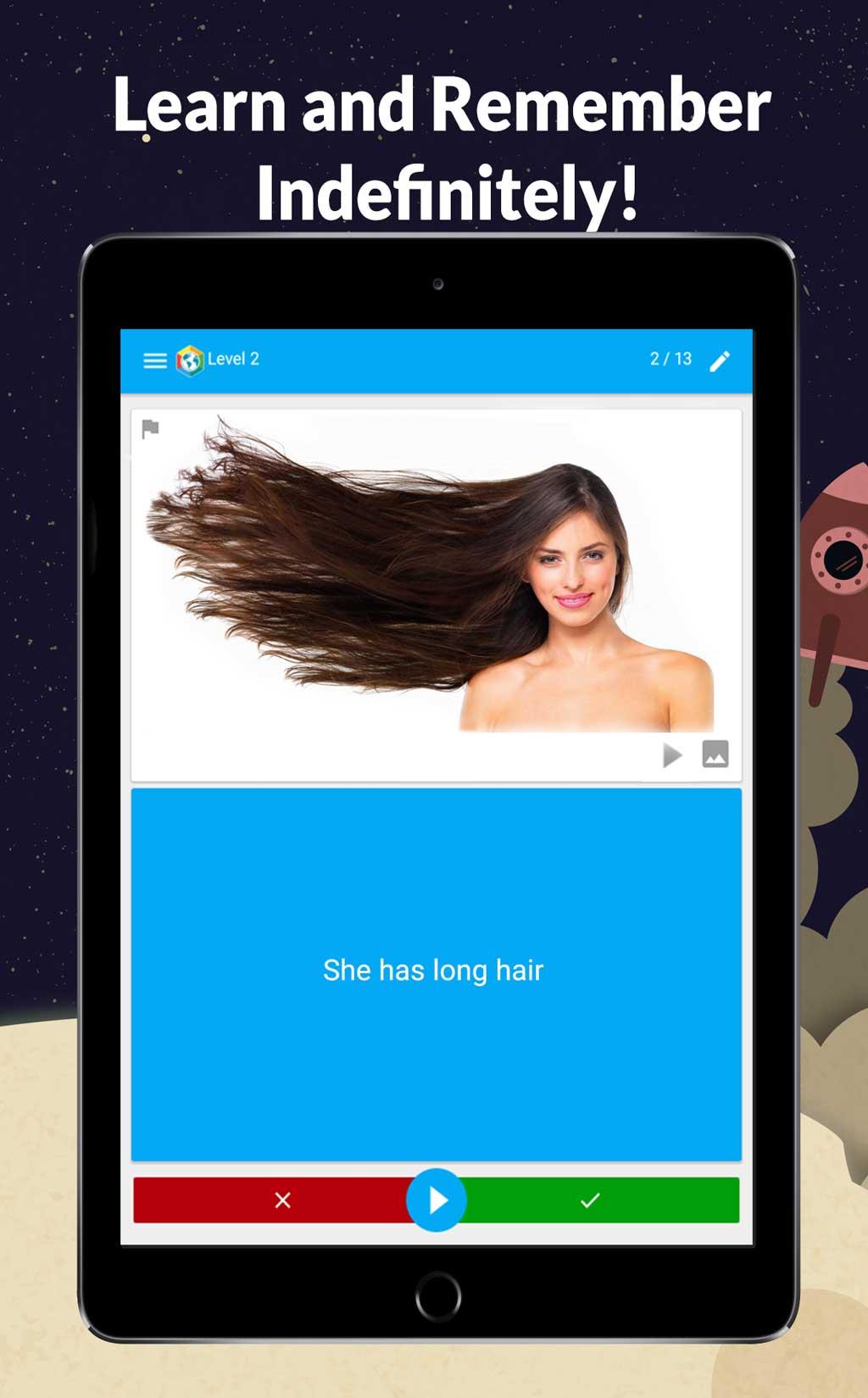 We usually forget what we learn such as learning languages over time as the information is put mainly in our Short-term Memory. We have combined several scientifically proven tactics such as Leitner System, Flash Cards, Gamification, and Space Repetition to help you keep what is “Valuable for You” in your “Long-term Memory” where languages are placed! Based on our tests, people who have used our "Learn Languages app" can recall more than 80% of learning materials after a month, compared with those who learn languages with other methods that can recall only 20% after 48hrs!