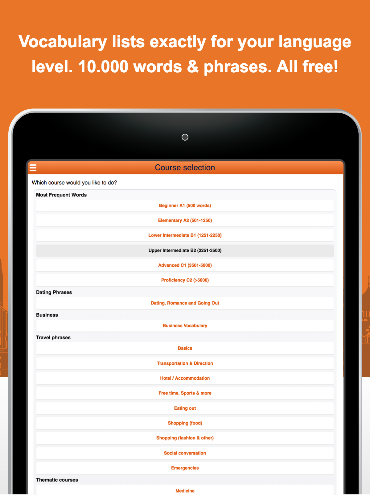 Add your own vocabulary lists: If you are taking a course at a school, university or private academy, you can add the words from your textbook and learn them here instead of looking them up in a dictionary.