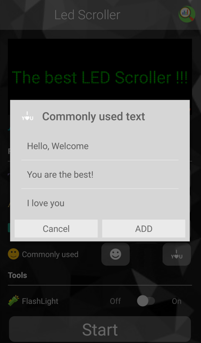 Led Scroller (Package Name: com.lkr.ledscroller) is developed by LKR STUDIO and the latest version of LED Scroller (Banner + Record) 3.1.0 was updated on July 27, 2020. LED Scroller (Banner + Record) is in the category of Tools. You can check all apps from the developer of LED Scroller (Banner + Record) and find 80 alternative apps to LED Scroller (Banner + Record) on Android. Currently this app is for free. This app can be downloaded on Android 4.2+ on APKFab or Google Play. All APK/XAPK files on APKFab.com are original and 100% safe with fast download.