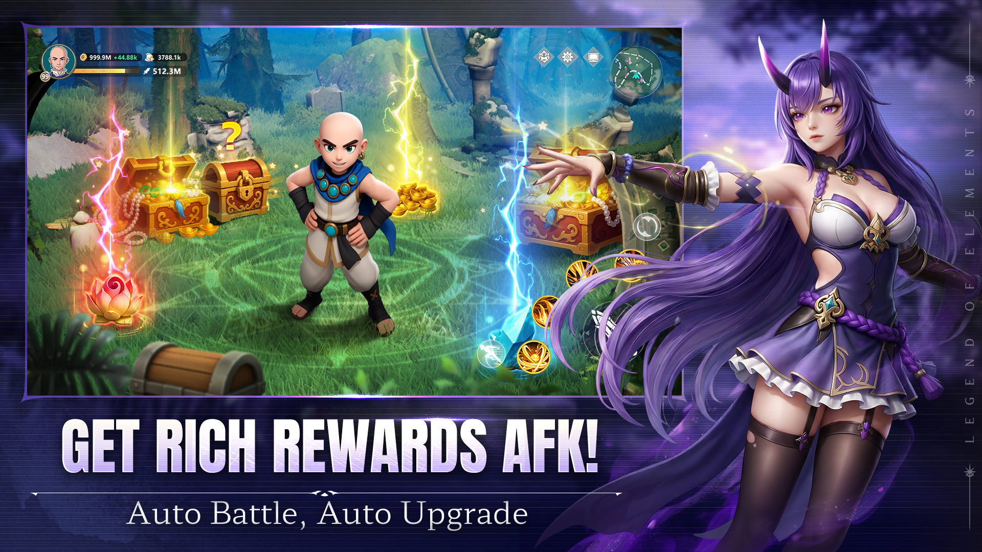 Ready to save the world, Elementalist? The distant lands of the East have long been rich in three elements: wind, fire, and thunder... Yet a sudden elemental storm plunged all into chaos. Now demons and dragons wreak havoc—and you must rise to be the savior of this world! Awaken your elemental powers, and embark upon a fantastic adventure like none other! [New Player Giveaway] Just log in to claim 1,000 draws, the Limited-Edition Spirit Panda [Bambam], the Supreme Sword, and a generous item pack: all for free! Start your elemental journey with a bang! [Wondrous Open-World Exploration] A seamless open world awaits. Explore wildernesses, mountain valleys, thick forests, and even sprawling oceans. Mysterious forces and unknown thrills lie around every corner. Search for ancient treasures, tap into the power of nature itself, traverse lands no others dare tread... And you shall create a legend all your own! [Endless Possibilities: Master Elemental Skills] Choose from three classes, then begin your journey to master the elements of wind, fire, thunder, ice, and much more! There are hundreds of skills to mix and match from as you summon elemental spirits, take on fearful dragons and demons, and immerse yourself in thrilling combat! [Discover Magical Companions] Powerful Spirits and Pets abound in this elemental world, each holding mystical powers of their own. Recruit them as loyal companions, and build your own adventure squad! [Team Up, Make Friends, And Adventure Together] Join a clan to find kindred spirits, and set out on epic adventures together! Form teams to take down fierce monsters and mighty bosses together! [Idle Rewards Galore] Just turn on auto combat and leveling to boost your power, raking in Gear, Magites, and EXP with a single tap. Idle your way through the elemental world, stress-free! ________________________________________ A new legend is about to begin... Rise to become the elemental master! Join Legend of Elements now to save the world and gain your glory!