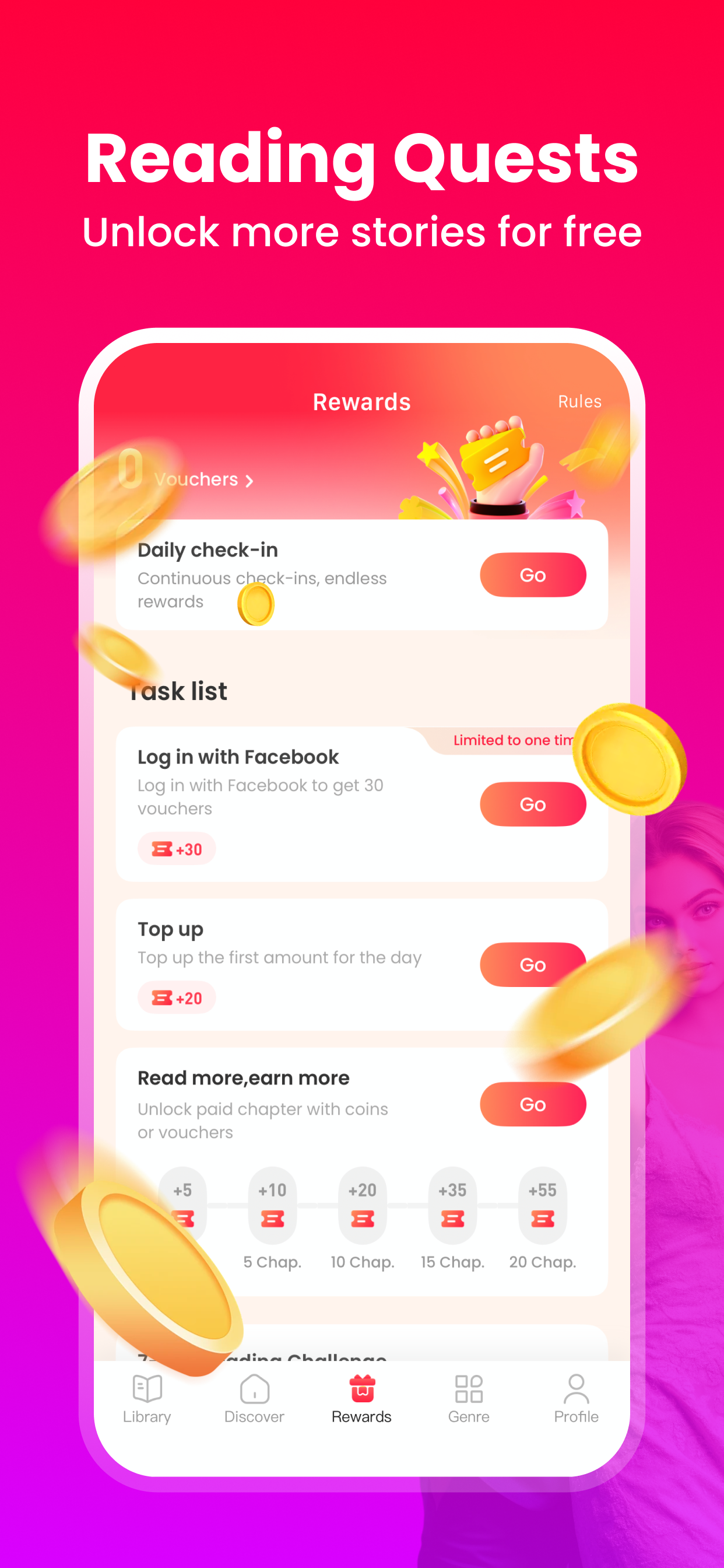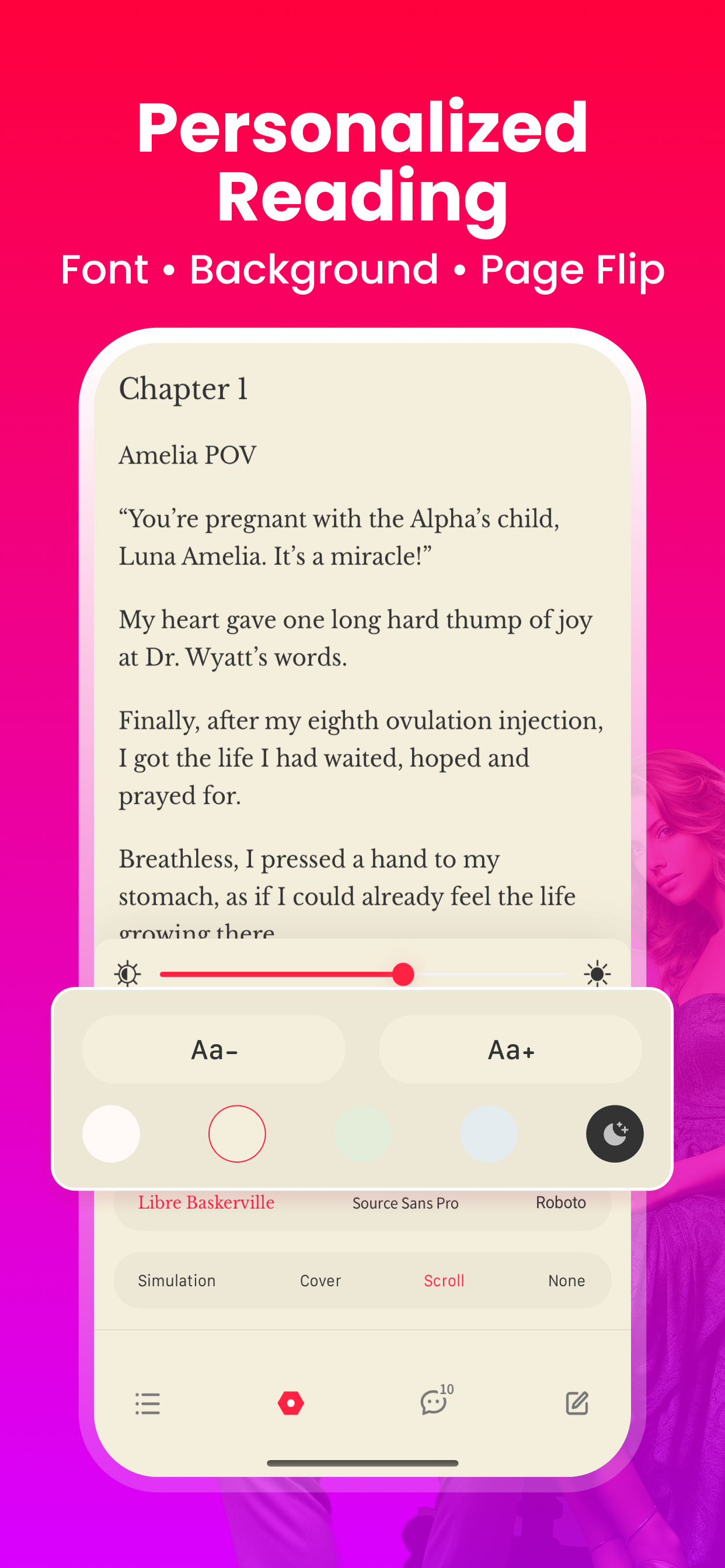 Personalize your reading with night mode, page flip effect, reading background, font size, screen brightness and more to have a comfortable reading experience!
