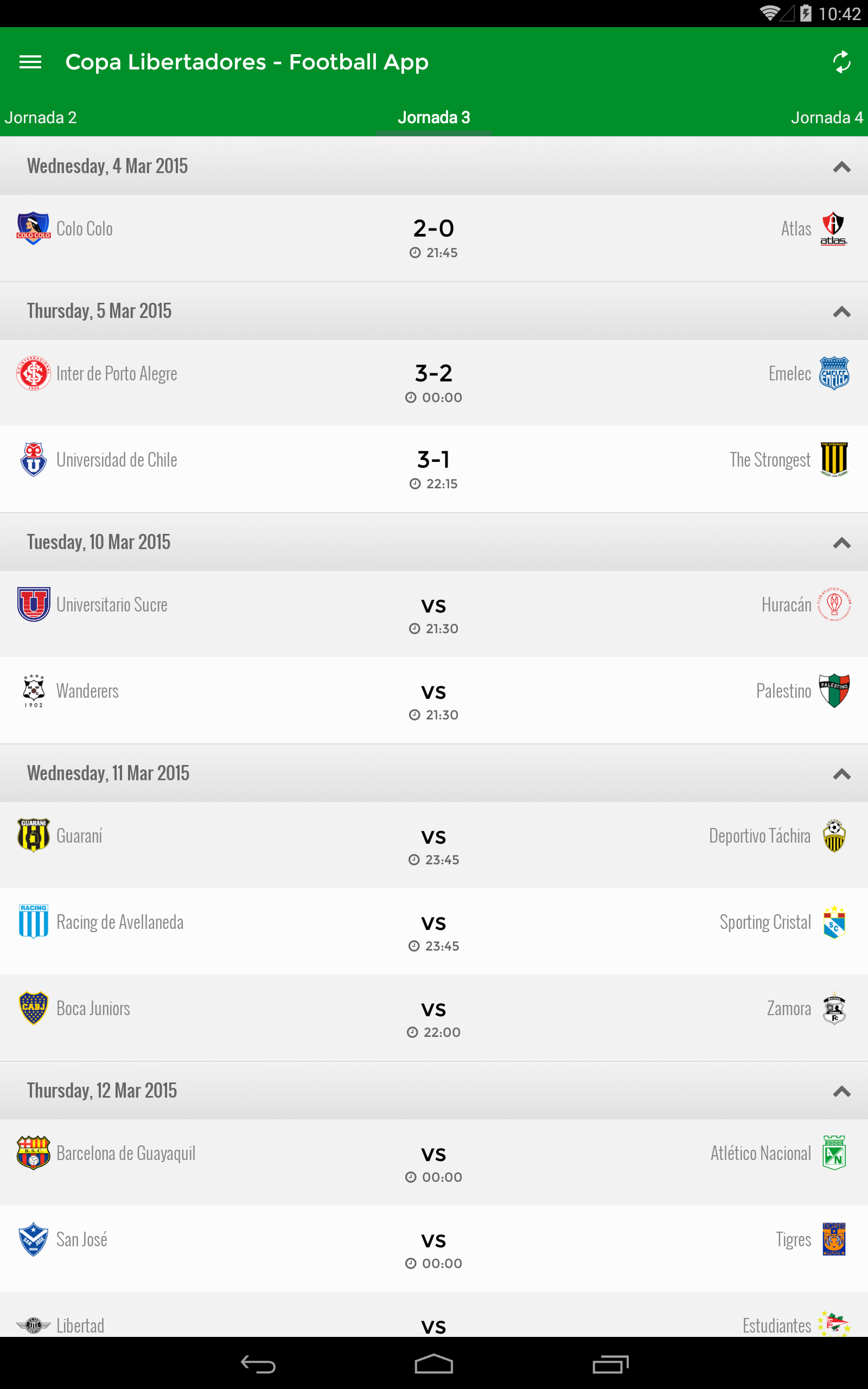 The application most comprehensive and updated to follow live everything that happens in the 2015 Copa Libertadores.