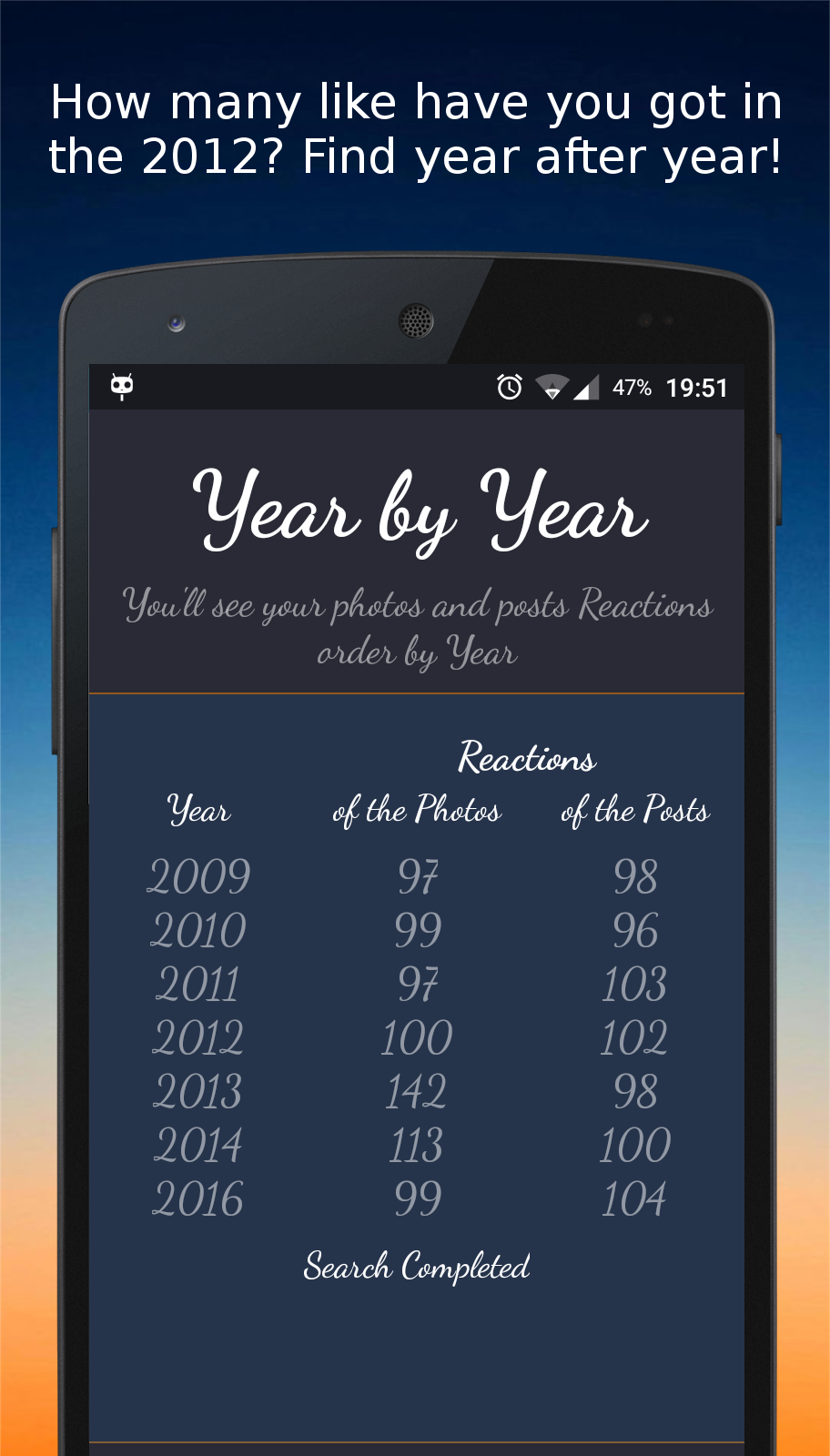Like Counter it’s back again! The Number 1 app of 2017 for discover useful and unique stats about your Facebook profile. Would you like to know how many Like have you got over the years? Discover your friends/stalkers that likes you the most or analyze your Facebook Stat? So take a look,