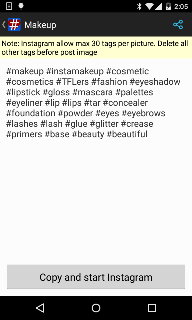 Choose a category, tap 'Copy' and Paste into your Instagram pictures!