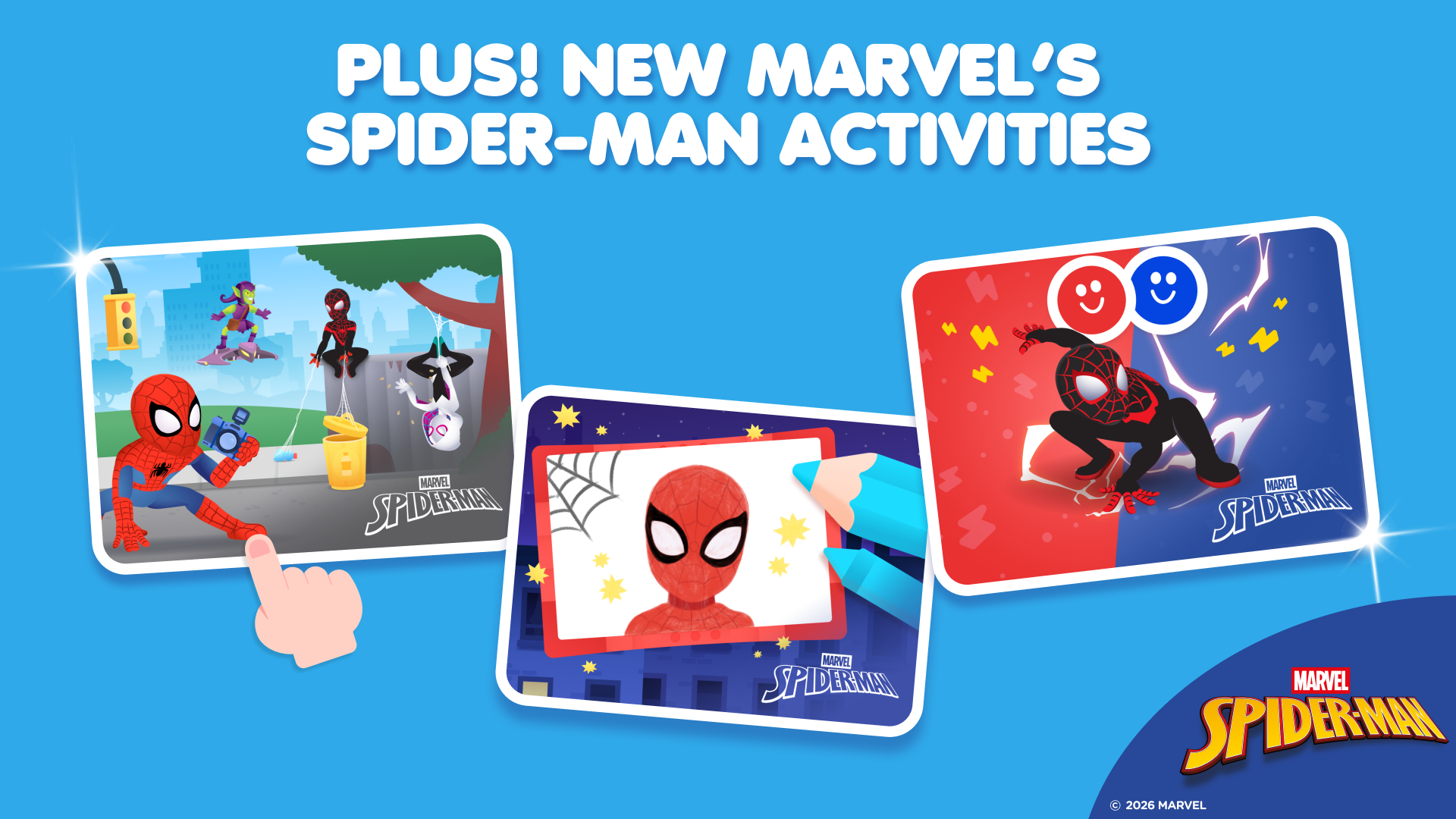 Your kid can now play brand-new Disney Mickey & Friends, Disney Zootopia, Marvel Spider-man, Disney Moana and Disney Frozen-themed activities. All fun, all edutaining—and all on the Playlearning™ app kids love!