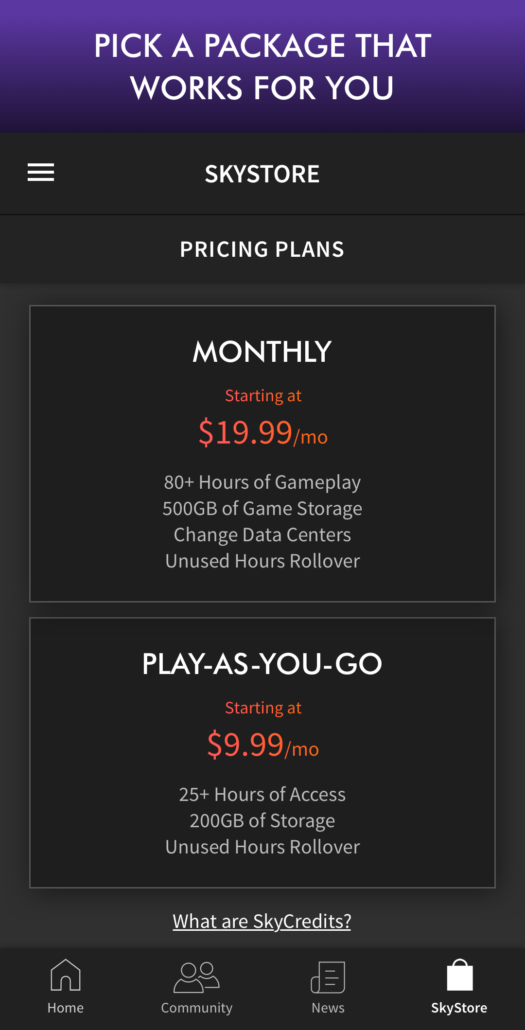 NEW FEATURES Elite power package added for Prestige+ subscribers BUG FIXES Fixed bug causing issues when editing the on-screen gamepad Fixed bug where left mouse click tried to select area when zoomed Fixed bug where home screen didn’t display the correct SkyComputer status Fixed occasional bug when right mouse click was pressed, left click did nothing Fixed occasional SkyComputer bug when connecting a mouse would crash the app Fixed occasional crash when opening community tab