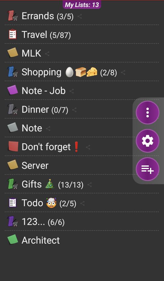 • Lists and notes can be shared