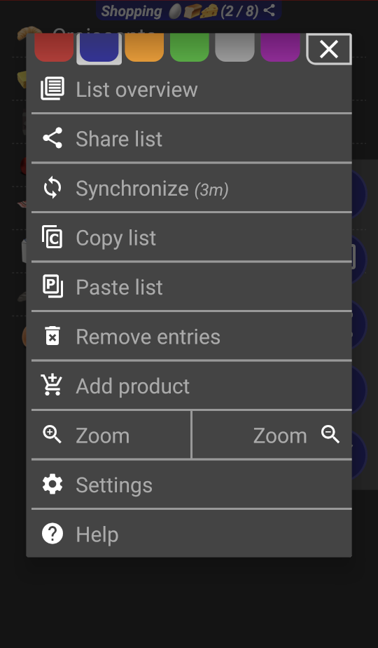 ⇒ Shopping lists: