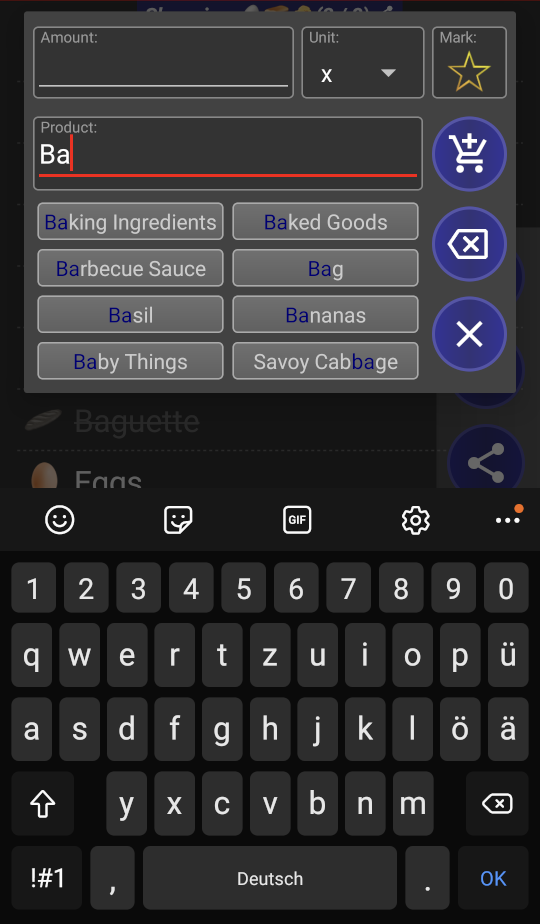 (if you enter e.g. Br , then Br ead , Br occoli , Br atwurst ... to choose from).